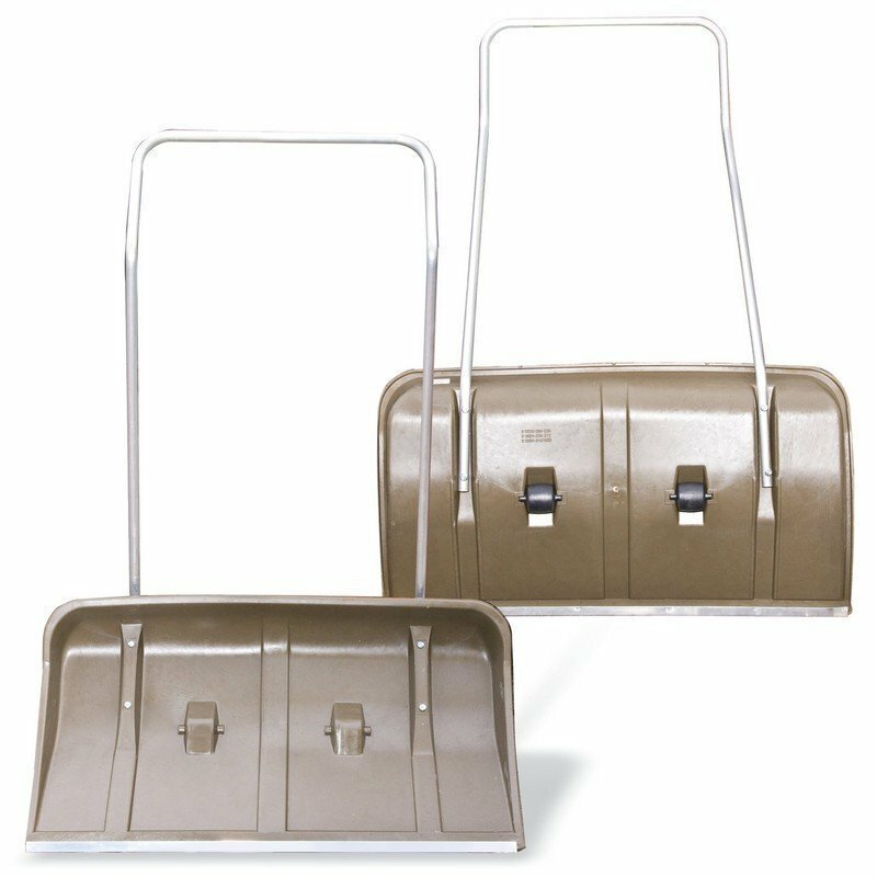 Скрепер для уборки снега, на колесиках. Формованный ковш с ребрами жесткости, с алюминиевой планкой. Материал: полипропилен, сталь, алюминий.