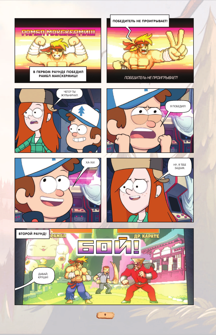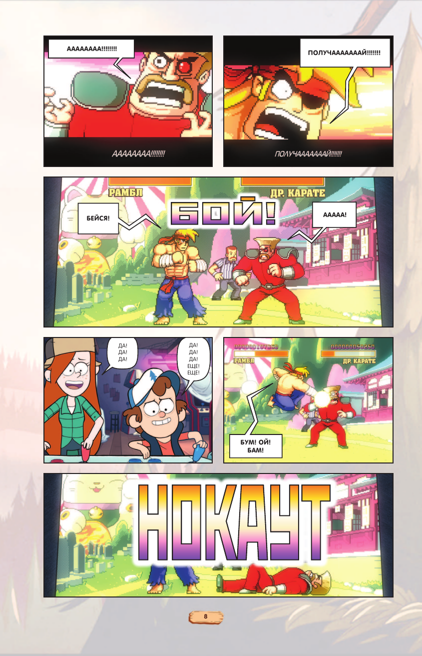 Четвертый выпуск культовых комиксов про американских близнецов Диппера и Мэйбл Пайнс. В новом 216-страничном издании нас порадуют очередными тремя историями: "Беги или сражайся" (эпизод 10) о компьютерном персонаже Рамбле Макскёрмише, "Малыш Диппер" (эпизод 11) о волшебном кристалле, увеличивающем и уменьшающем двойняшек и "Летоуин" (эпизод 12) о летоуинском монстре. Последний, к слову, также вышел отдельным выпуском.