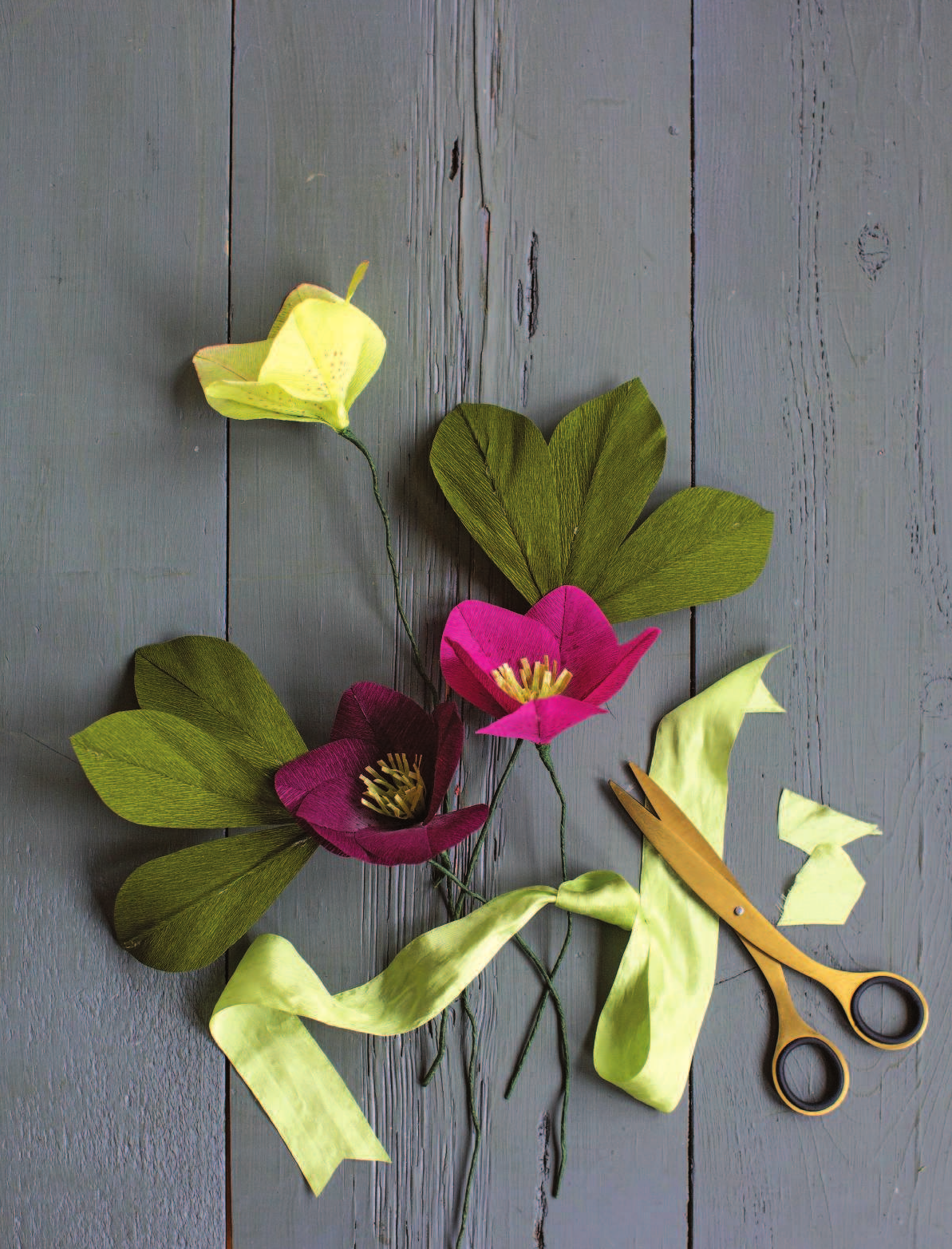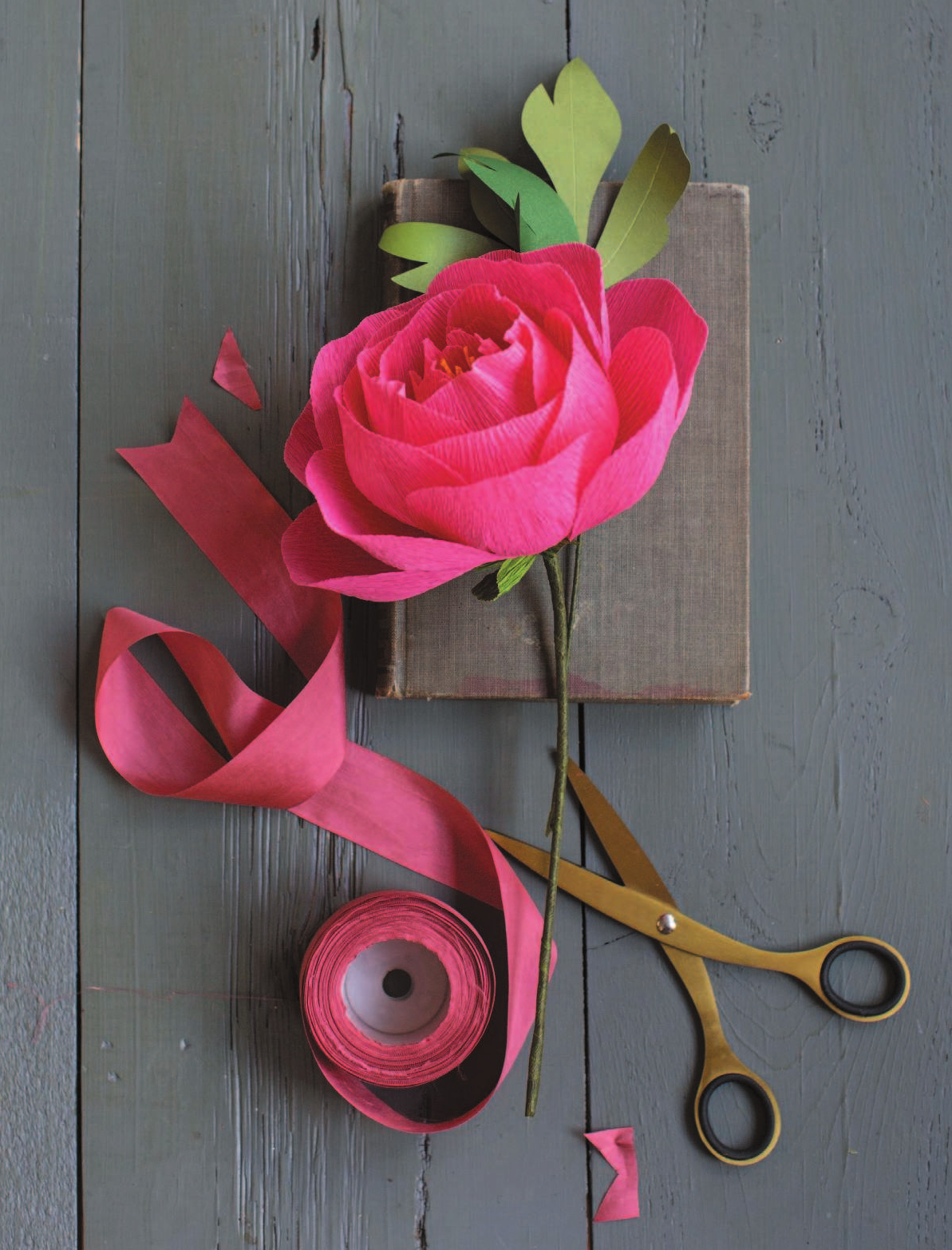 Креповая бумага - идеальный материал для создания бумажных цветов. Она пластична, проста в использовании, податлива: ее легко резать и каждый мельчайший лепесток или изгиб сохраняет форму, которую вы ему придали, будь то лепесток пиона, трубочка нарцисса или сердцевинка хризантемы.