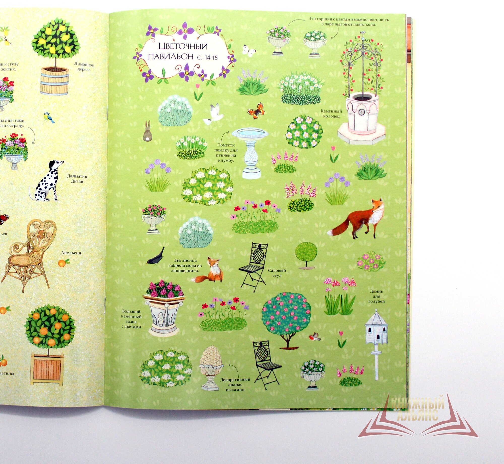 Каждая страница - это уголок сада, который можно украсить наклейками (цветы, растения, декор) по своему вкусу. Для тех, кто в душе дизайнер и любит все красивое, просто находка!