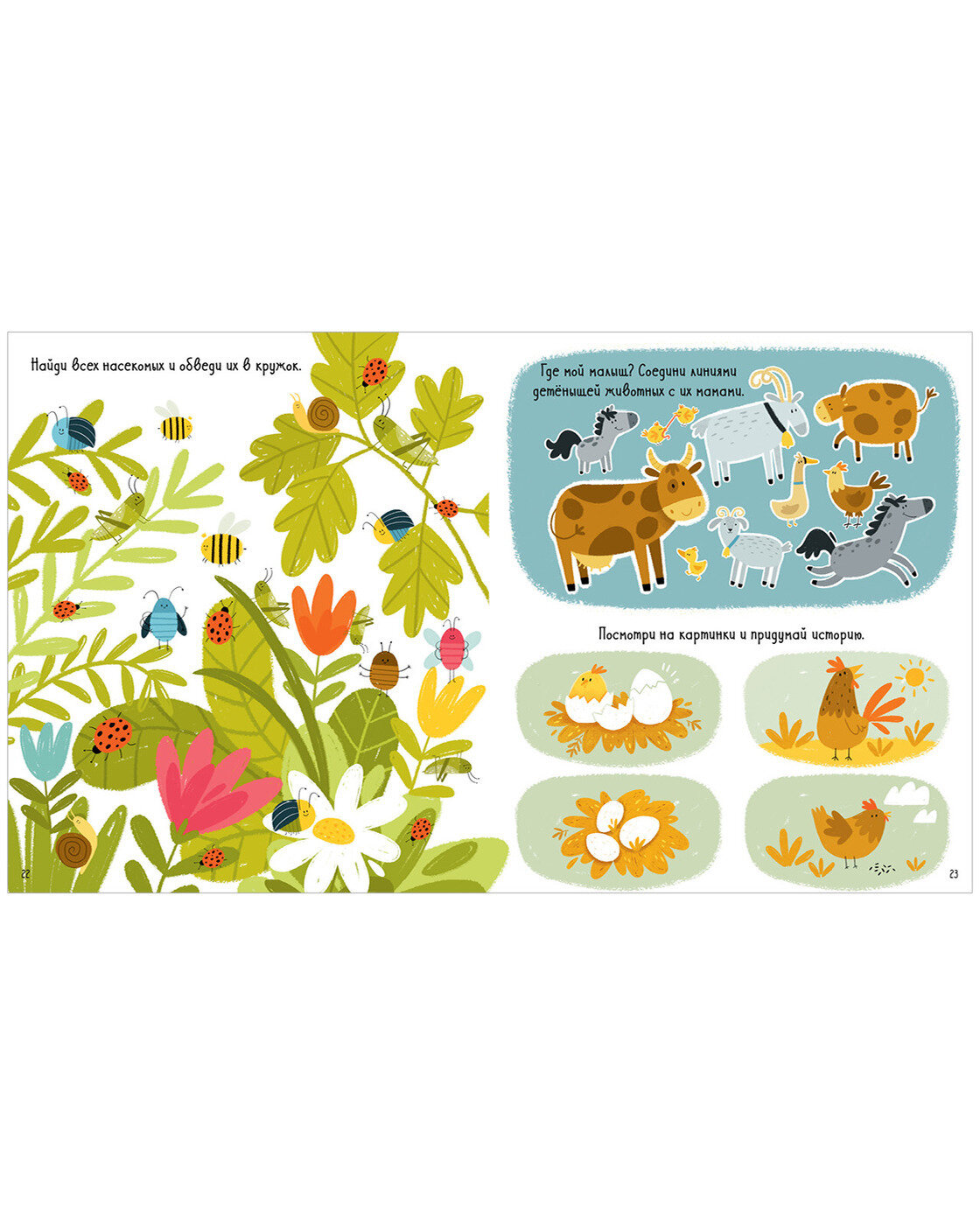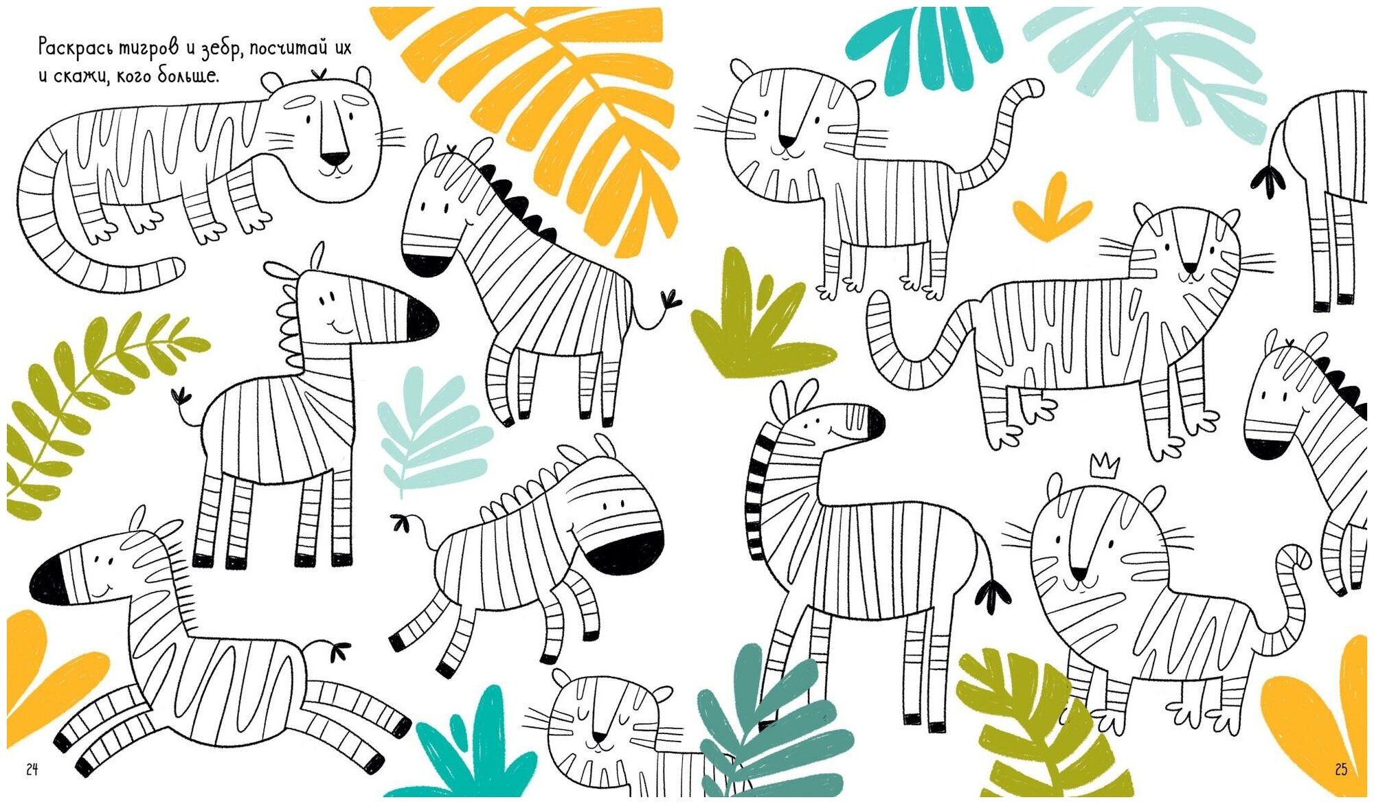 Ребенку предстоит изучить животных в зоопарке, на море и в джунглях, помочь найти детенышей коровы и лошади, придумать историю про курицу и яйцо, найти пару для попугаев, раскрасить и посчитать тигров и зебр, спасти маленького диплодока от тираннозавра и спрятать его в домике в конце лабиринта. В общем, работы малышу предстоит много! На то, чтобы дойти до самого конца «Большой книги игр и заданий про животных», уйдет много времени, а главное, это будет весело и интересно!