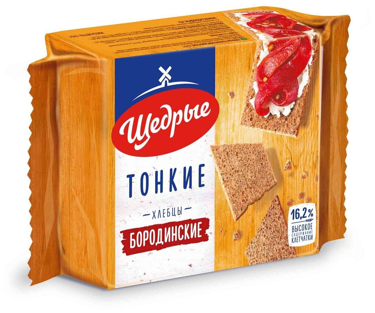 Хлебцы Щедрые Бородинские тонкие 170г Ориент Продактс