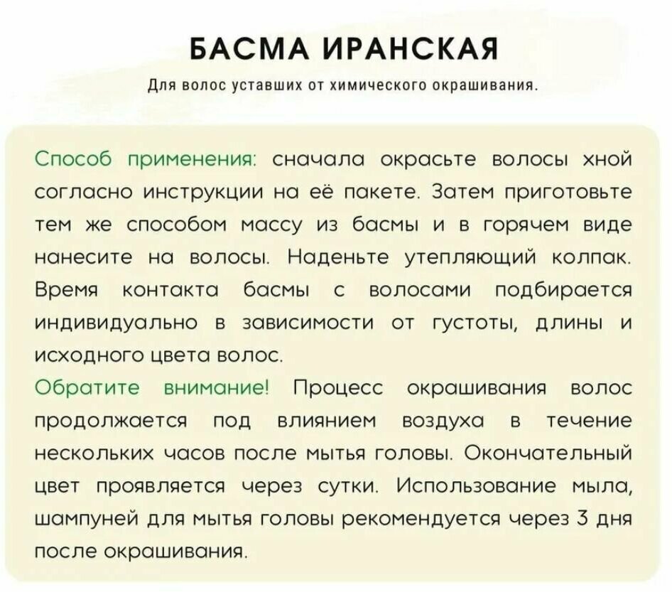 «Та самая басма!» в бумажном ретро-саше - это качество, подтвержденное десятилетиями. В дань уважения нашим самым первым продуктам, а также большому количеству их поклонников, мы до сих пор выпускаем хну и басму в простых, бумажных пакетах. Иранская басма - натуральное, растительное средство для окрашивания волос в тёмные тона (от светло-каштанового до чёрного). Изготавливается из высших сортов кустарника Indigofera Tinctoria (или Argentea), выращиваемого на лучших плантациях Ирана. Высокое качество продукта подтверждено аттестатом «ростест». Благодаря содержанию биологически активных веществ продукт оздоравливает волосы:укрепляет корни и стимулирует рост волос;придаёт волосам естественный блеск;улучшает структуру волос;обладает антисеборейным эффектом.