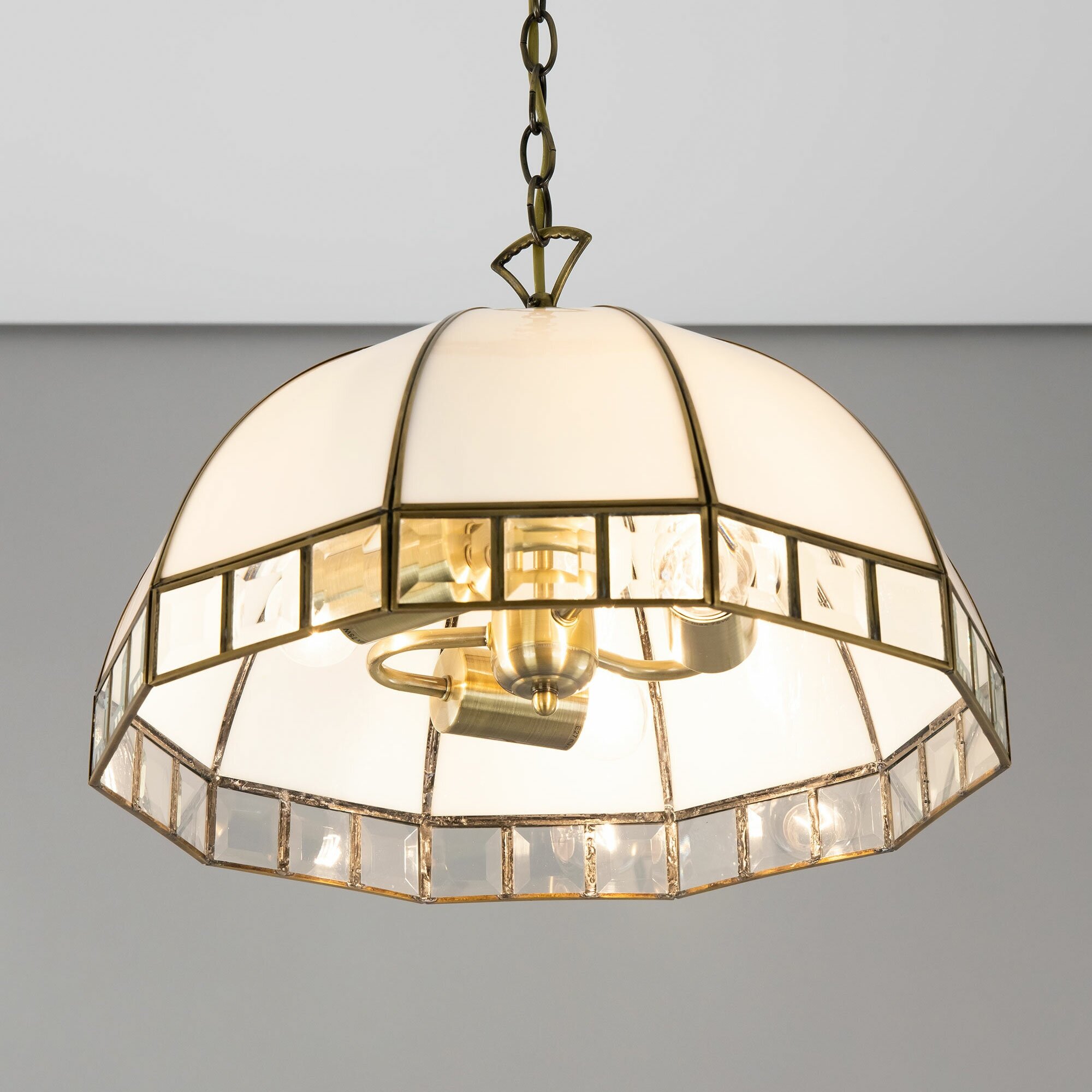 - Citilux Шербург CL440231 Бронзовая подвесная витражная люстра