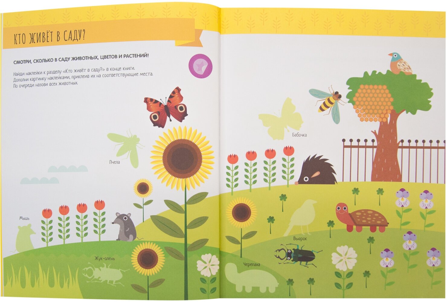 Книга Мозаика-Синтез В саду. Активити с наклейками Метод Монтессори. Развитие через игру 3+ (МС11359)