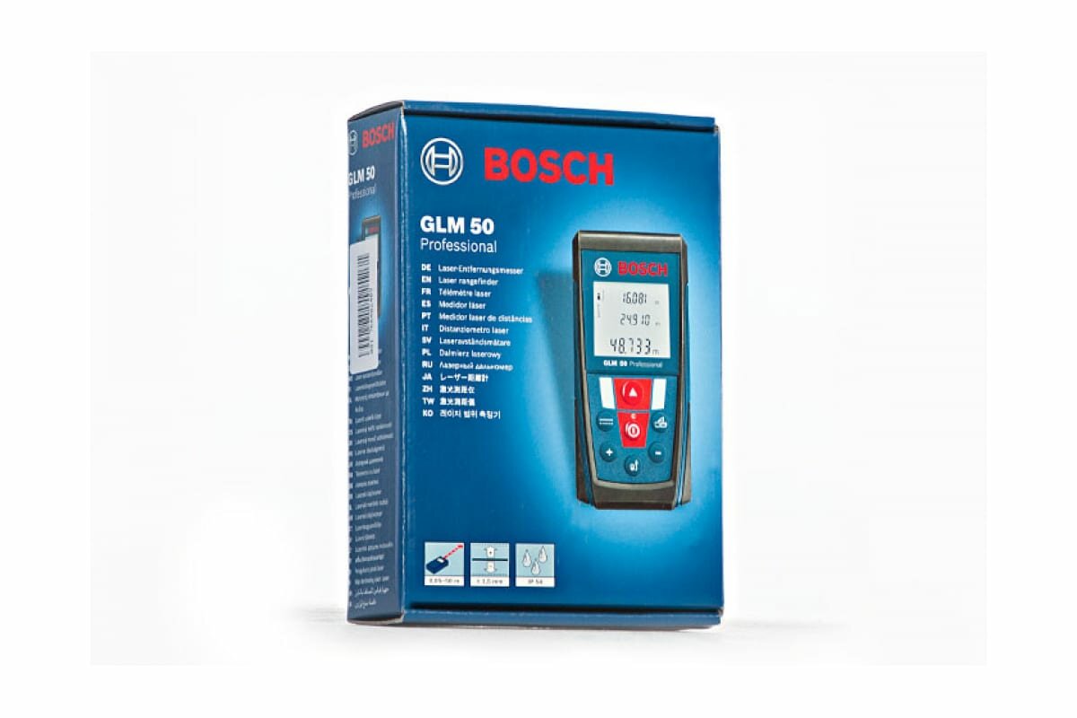 | Прочие особенности | BOSCH GLM 50 – профессиональный лазерный дальномер для определения расстояния до объекта. Прибор прост и удобен в работе. Он точно производит замеры внутри помещений и на открытых стройплощадках. Кроме того, позволяет работать с полученными данными (складывать и вычитать). |