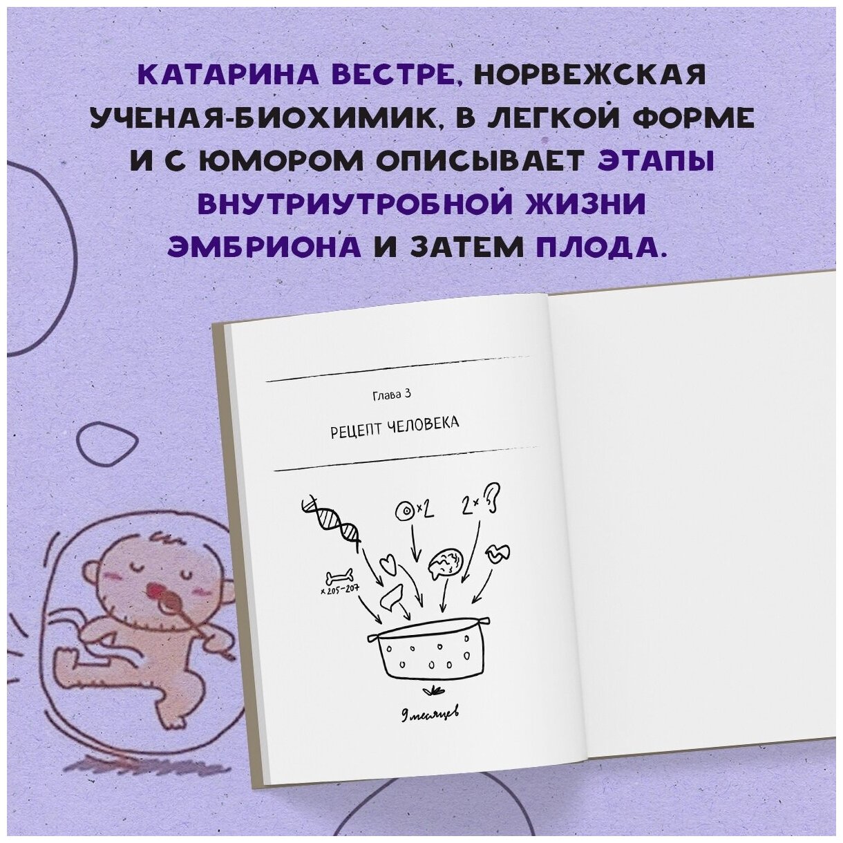 Знаете ли вы, что в начале XX-го века выражение "КРОЛИК УМЕР" означало, что женщина беременна? Или то, что крошечный морской червь "Bonellia viridis" проводит всю свою жизнь в своей же самке, являясь ее личным донором спермы? Это всего лишь два из очень необычных фактов, которые вы найдете в книге Катарины Вестре, рассказывающую нам все о чудесном процессе развития человека в утробе матери.