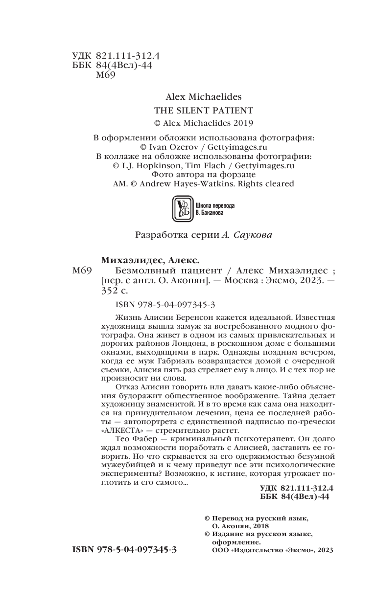Книга: Безмолвный пациент (Алекс Михаэлидес); Эксмо, Редакция 1, 2025