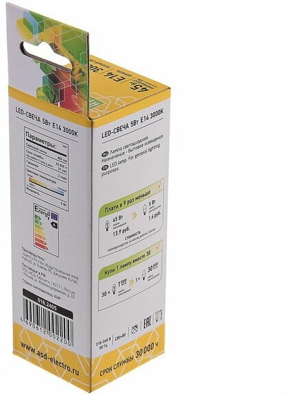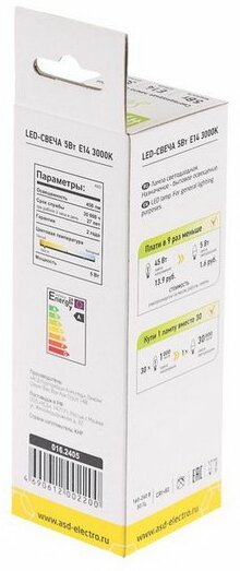 Сервис сравнения цен СкидкаГИД предлагает сравнить цены на товар «Лампа светодиодная Asd Led-СВЕЧА-standard 5.0Вт 160-260В Е14 3000К»