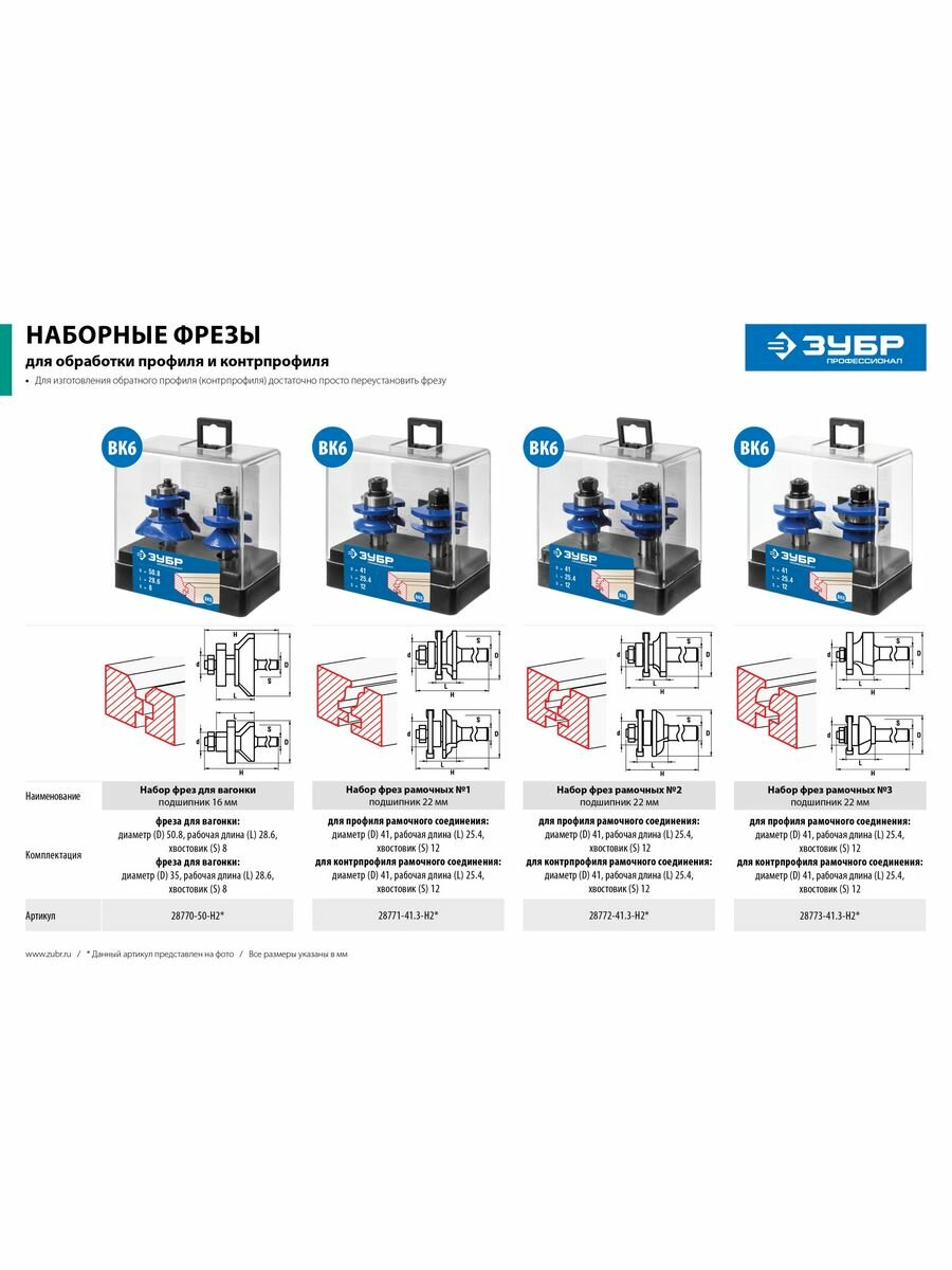 Сервис сравнения цен СкидкаГИД предлагает сравнить цены на товар «Набор фрез ЗУБР по дереву 28770-50-H2»
