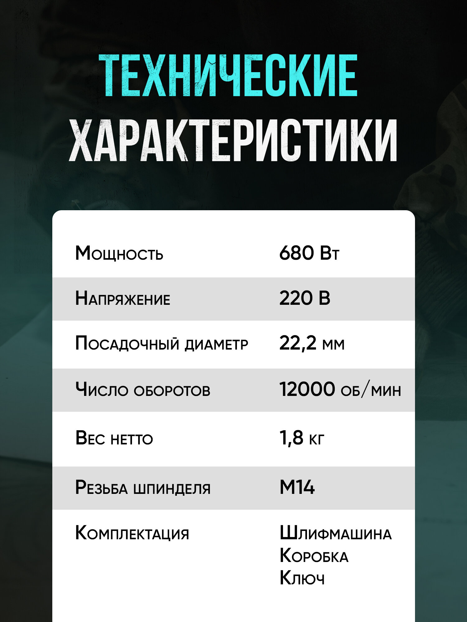 | Комплект поставки | Угла-шлифовальная машина - 1 шт. Руководство пользователя- 1 шт. Дополнительная рукоятка - 1 шт. Прижимной фланец - 1шт. Защитный кожух - 1 шт. Ключ - 1 шт. Упаковка- 1 шт. |