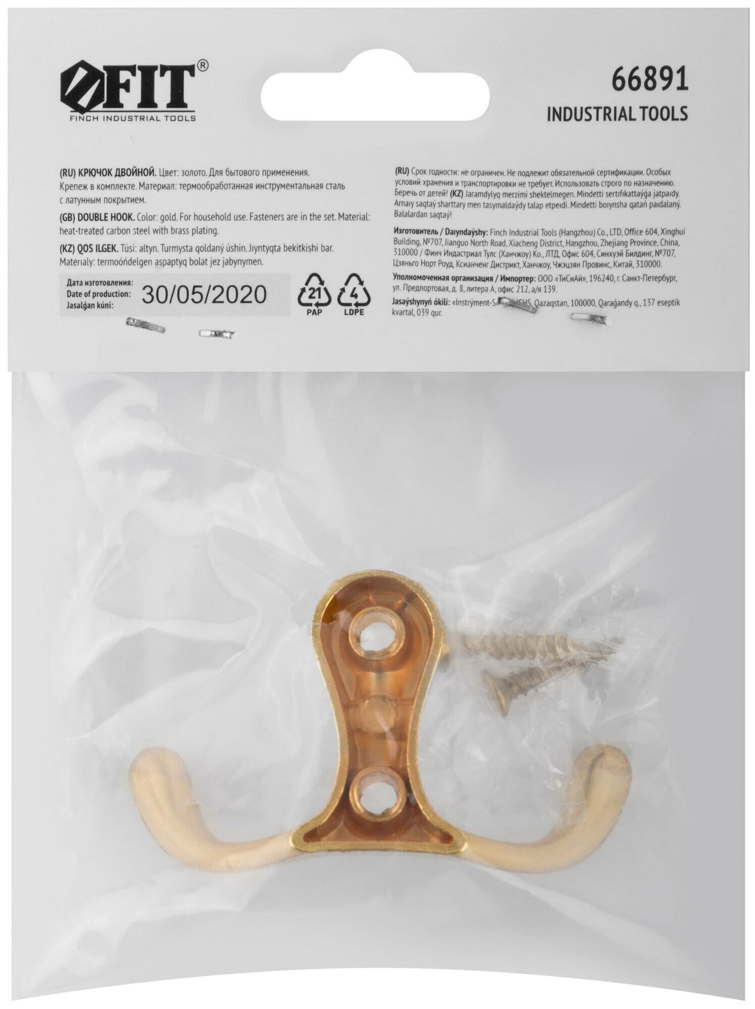 Крючок двойной. Для бытового применения. Необходимый крепеж в комплекте. Материал: инструментальная сталь. Упаковка: п/э пакет с картонным подвесом.