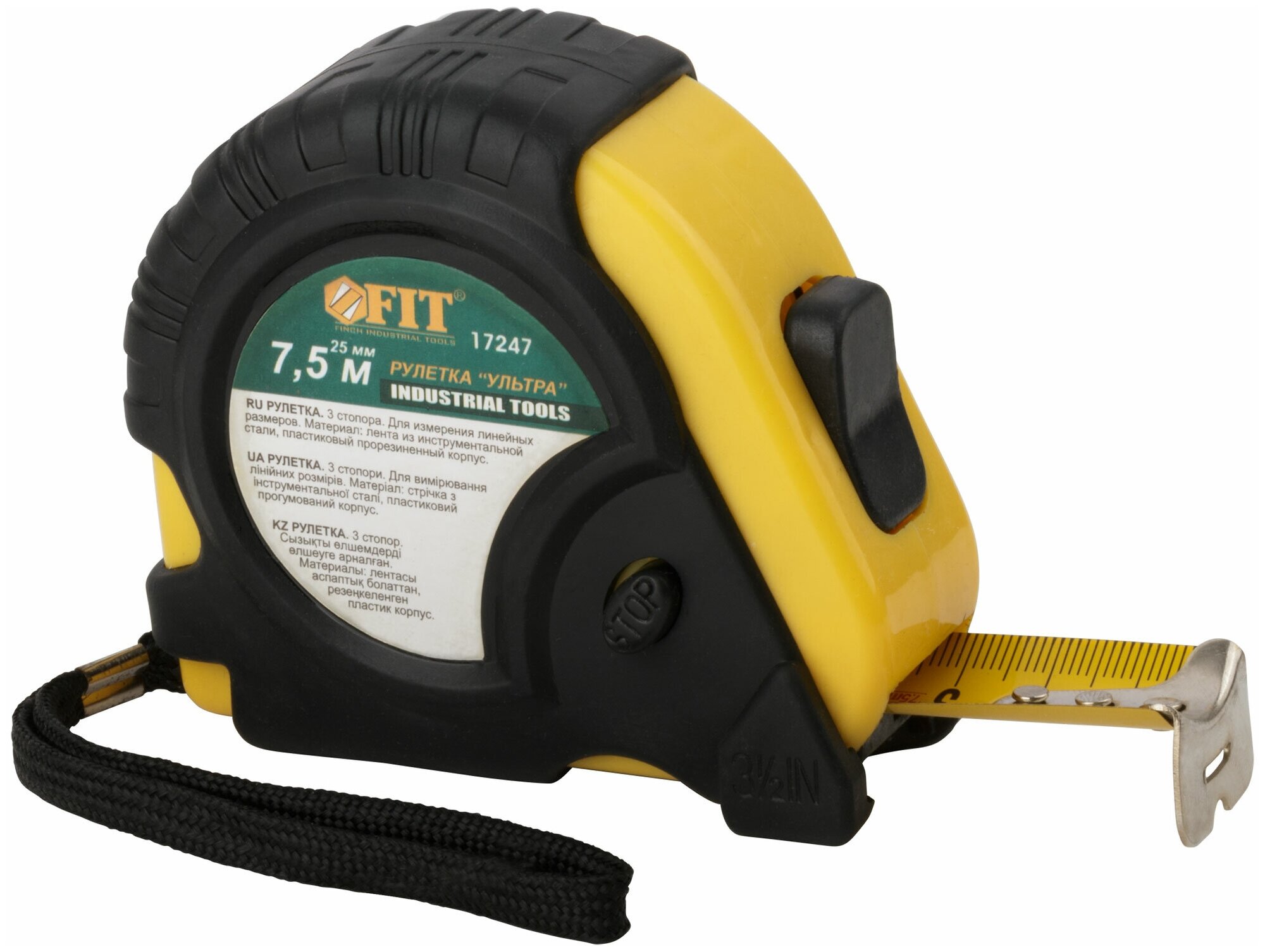 Рулетка 7.5 м х 25 мм FIT Ультра (прорезиненный корпус, тройной стопор)