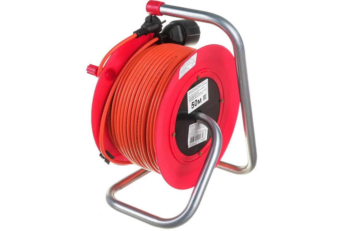 - Силовой удлинитель на катушке К1-Е-50 для электрической газонокосилки и других электро инструментов