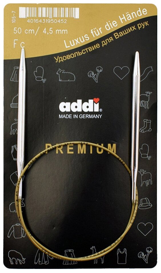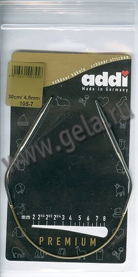 105-7/4.5-50 Спицы круговые супергладкие никель №45 50 см. ADDI