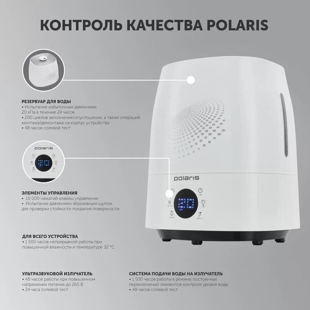 Увлажнитель воздуха Polaris мощностью 30 Вт — прибор, необходимый для поддержания нормального уровня влажности в помещениях. Это бытовая модель, которая проста в установке, обслуживании и уходе. После заполнения специального бака водой прибор можно включать в сеть. Управление осуществляется через сенсорную панель управления, на которой расположены индикатор уровня влажности, электронный гигрометр. Увлажнитель Polaris можно устанавливать как на полу, так и на столе.