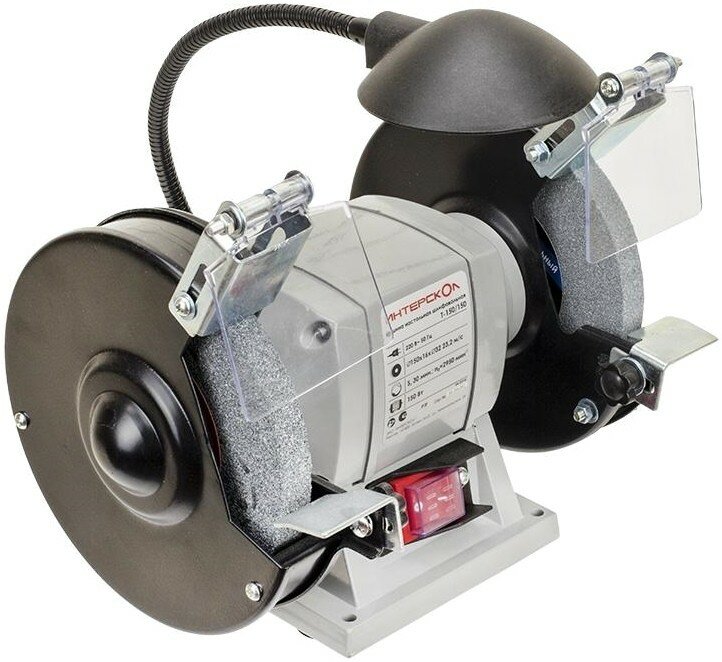 | Особенности | удобная регулируемая подсветка зоны заточки; металлический корпус; наличие упоров для заточки; наличие щитков для защиты оператора от искр; оптимальная мощность; простота применения. |
