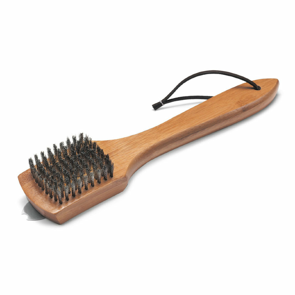- Щетинки из нержавеющей стали легко удаляют остатки пищи с решеток для приготовления
