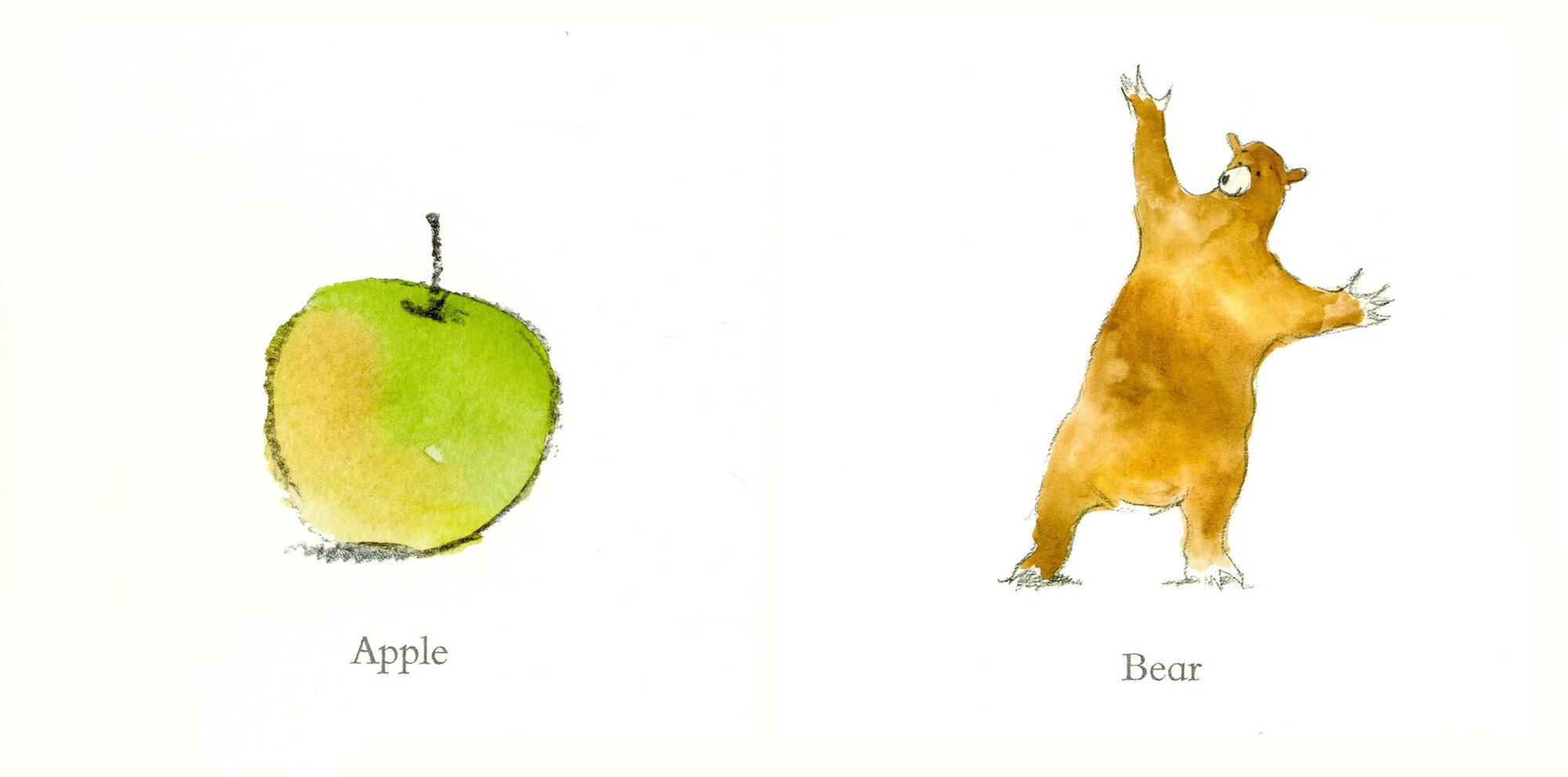 Orange Pear Apple Bear is a wonderfully simple and engaging picture book from award-winning author/illustrator Emily Gravett. By rearranging just four words, Emily Gravett creates a series of playful images which are joyful and intensely satisfying. The loose energy of the pencil and watercolour pictures will be irresistible to adults and children alike.