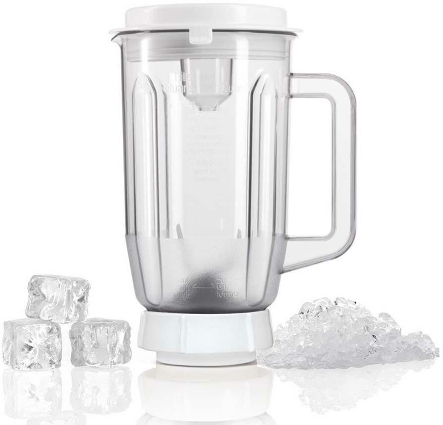 | Рабочие характеристики и свойства | Емкость для смешивания с мерной шкалой. Крышка с загрузочным отверстием. Возможность колки льда и измельчения замороженных овощей и фруктов. |