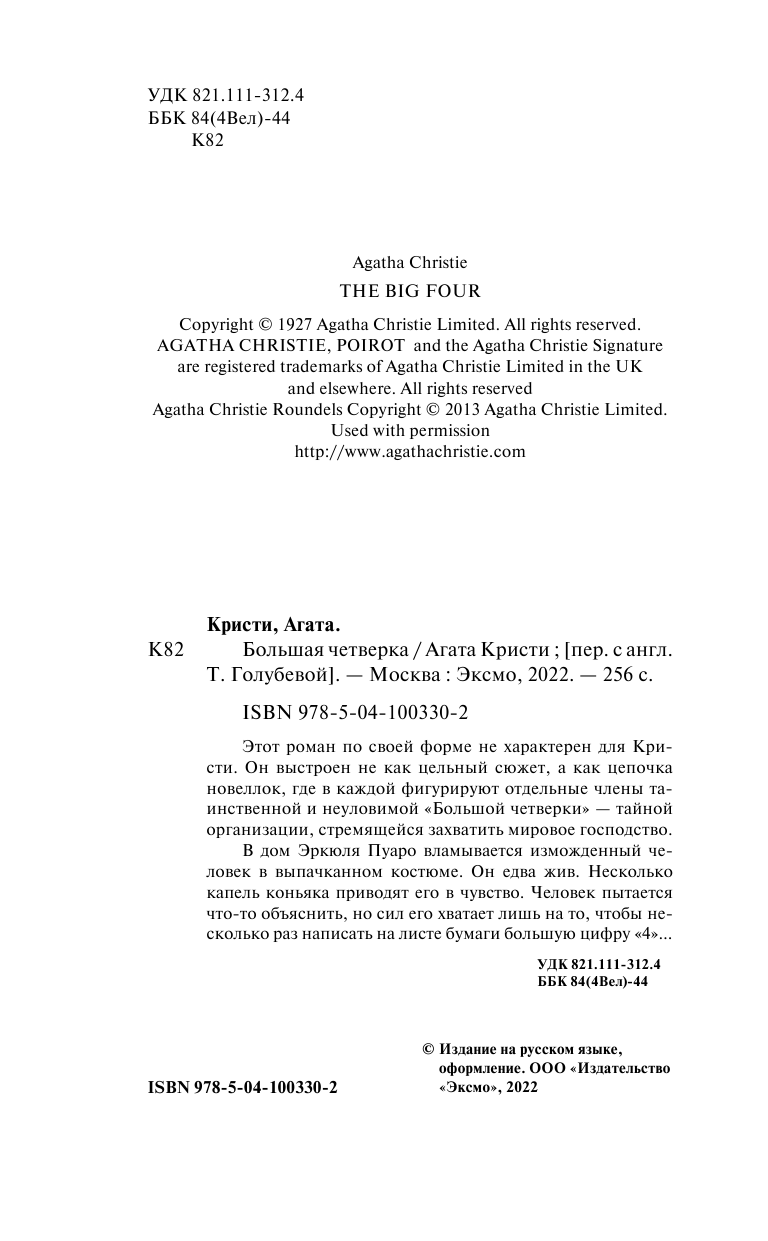Книга: Большая четверка (Агата Кристи); Эксмо, Редакция 1, 2019