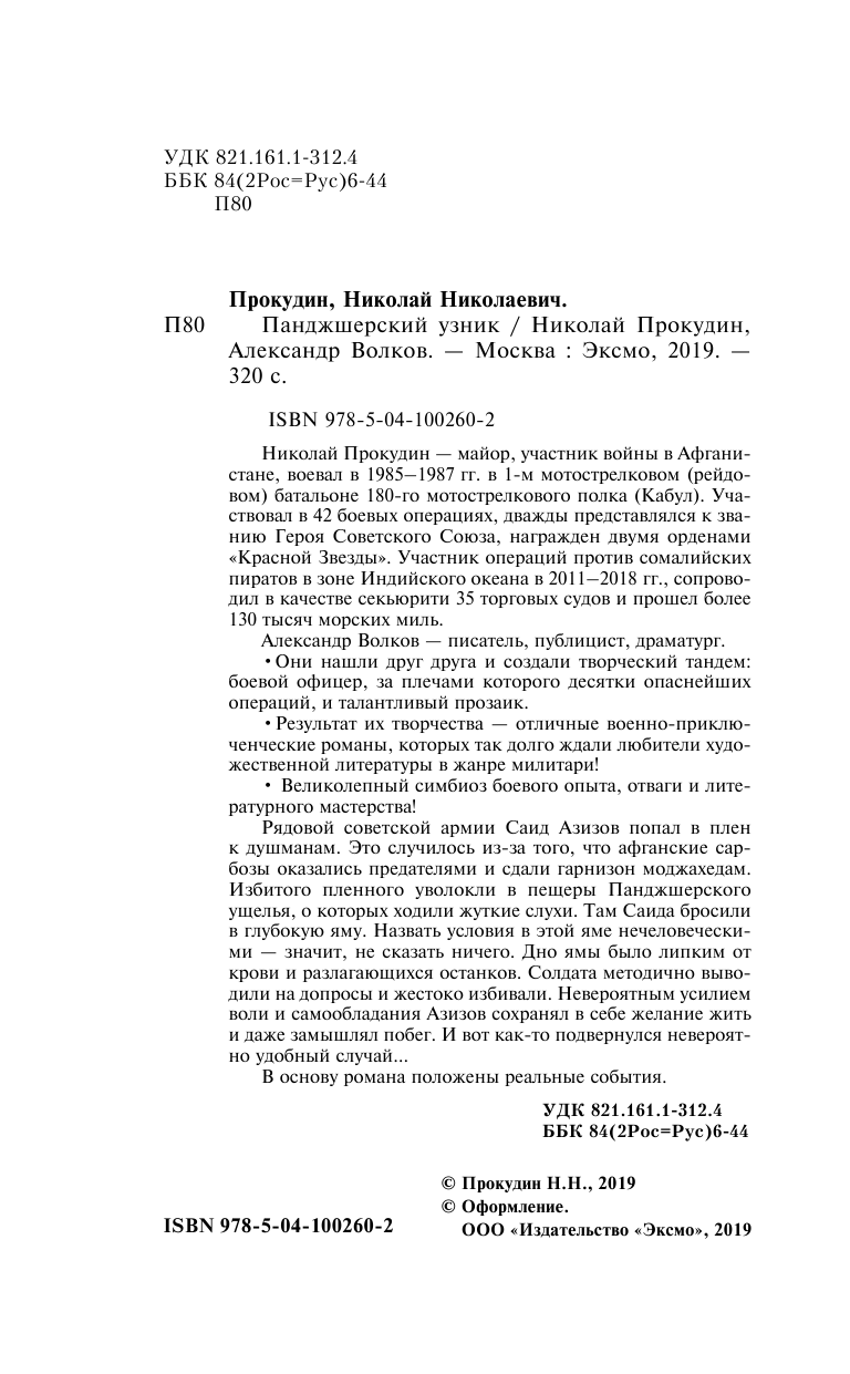 Книга: Панджшерский узник (Александр Иванович Волков, Николай Николаевич Прокудин); Эксмо, 2019
