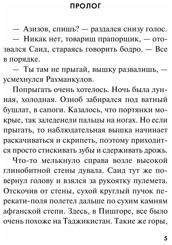 Книга понравилась. Интересное повествование о рядовом таджике Саиде Азизове. Главный герой прошёл все испытания войны, плен, тюрьму, смог бежать из застенков Мадабая, чуть не погиб при возвращении из плена. Был награждён, стал прапорщиком и вновь вернулся в Афганистан, мстить за павших товарищей! Молодёжи рекомендую к прочтению.