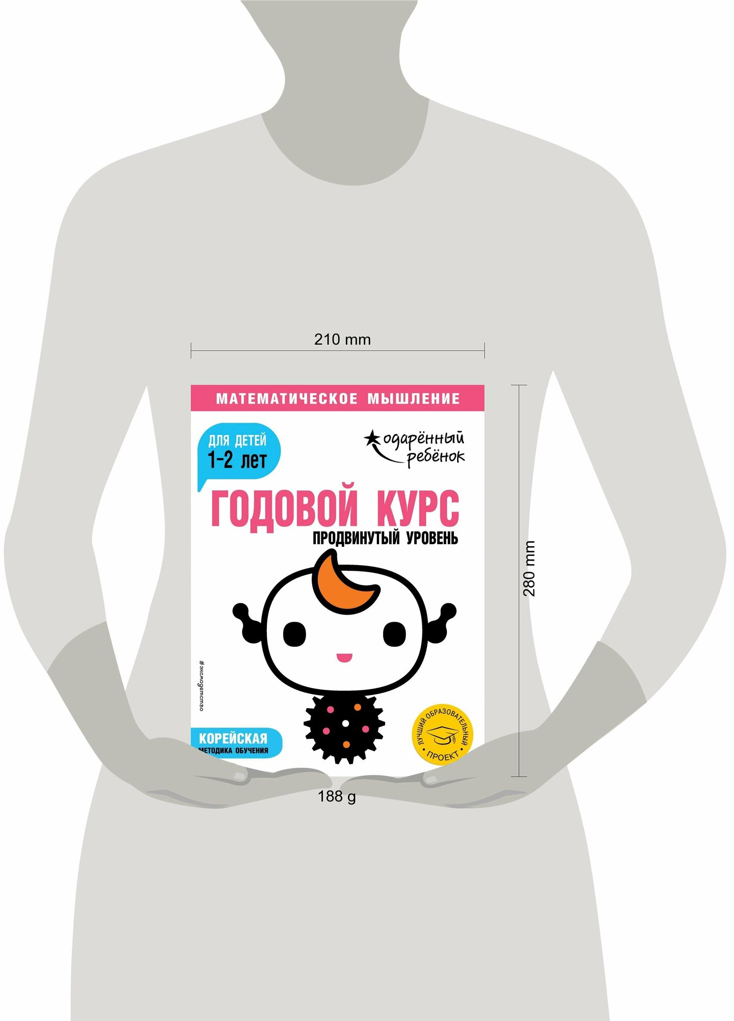 Важнейшая задача книги - развитие у ребенка первого года жизни, математического мышления. Пособие наполнено яркими красочными картинками, которые можно обсудить, потрогать, обвести пальчиком, приклеить на них с помощью взрослого наклейки. Весёлые игровые занятия стимулируют деятельность головного мозга и зрительно-моторную координацию. Малыш расширит свои знания, научится не только распознавать формы, но и начнет понимать, что у квадрата и треугольника есть углы, а у круга их нет, закрепит знания об основных цветах, понятиях "один - много", "часть и целое", научится разделять предметы на группы (ягоды, фрукты, машины) и проводить длинные линии, что намного сложнее, чем короткие. Каждое занятие сопровождается полезными советами для родителей. Благодаря особенностям методики, используемой в книге, параллельно развиваются и другие когнитивные функции: мышление, воображение, мелкая моторика. Такой комплексный подход способствует гармоничному развитию малыша во всех направлениях.