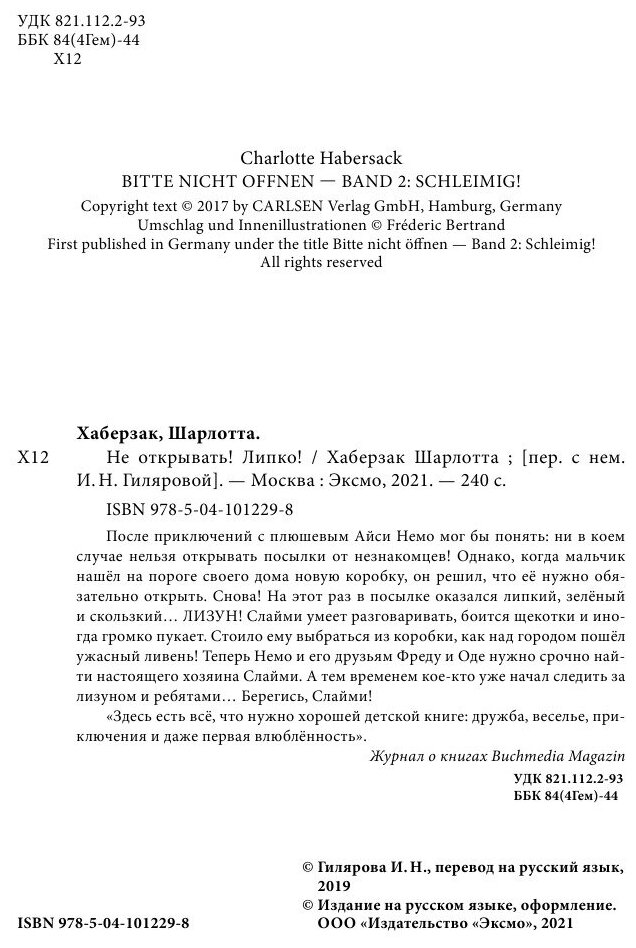 Книга: Не открывать! Липко! (Бертран Фредерик (иллюстратор), Гилярова Ирина Николаевна (переводчик), Хаберзак Шарлотта); Эксмо, 2022