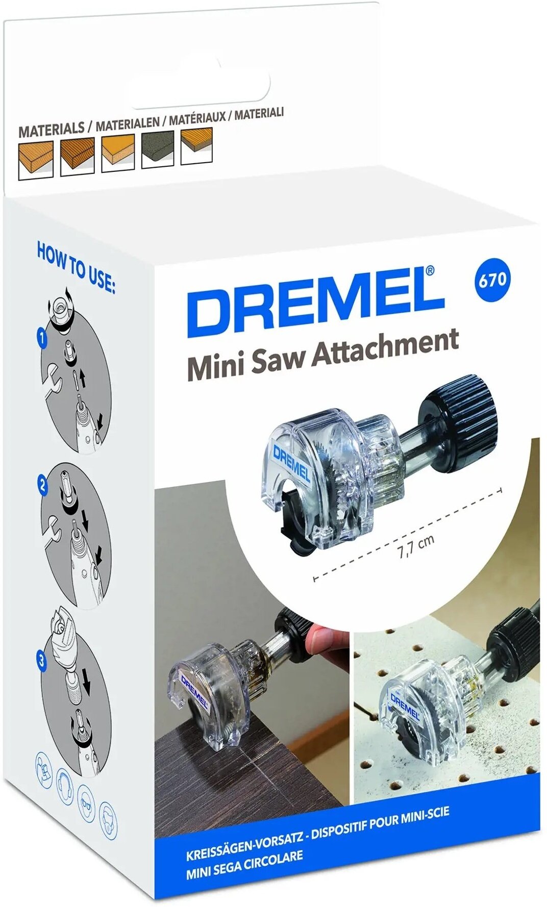 Необходимая приставка мини-пилка Dremel 670, которая понадобится инструменту Dremel, чтобы циркулярная пила работала во всю мощь. Приставка не дешевая, но профессионально работать без нее не получится. Зато работает она очень точно и быстро, пилит древесину, она легко устанавливается к пиле.