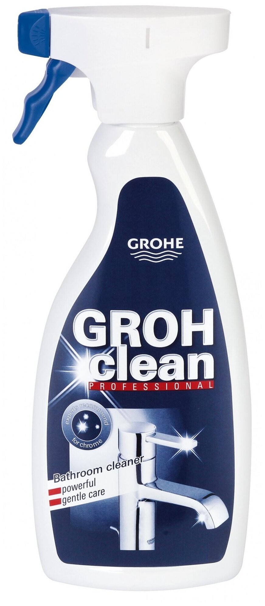 Для ухода за хромированными поверхностями компания Grohe рекомендует использовать специально разработанное чистящее средство GrohClean. Grohclean отличается от чистящих средств, которые Вы использовали раньше. Оно не царапает поверхность и не разъедает декоративное покрытие. Используя средство Grohclean, Вы сможете наслаждаться сияющим блеском продукции Grohe на протяжении всего срока эксплуатации. Бутылка 500 мл с пульверизатором.