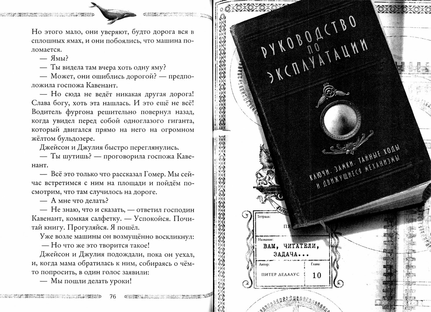 Кто такой на самом деле Улисс Мур? И что за таинственный кит заплыл в Килморскую бухту? Джейсон, Джулия и Рик вот-вот узнают это. Но коварные Обливия и Манфред, оставшиеся в живых после очередного падения с утёса, тоже вот-вот осуществят свою мечту: проникнут на виллу "Арго" и пройдут сквозь Дверь времени. Остановить их может только Блэк Вулкан, старый друг Улисса. Чтобы его найти, ребятам придётся отправиться в двенадцатый век. Вернуться обратно будет не так просто, особенно если по пятам следуют их враги. И все желают одного и того же: найти Первый ключ. Только он один способен открыть все Двери времени. Пятый и шестой дневники Улисса Мура ещё больше приближают читателя к разгадке тайны Килморской бухты.