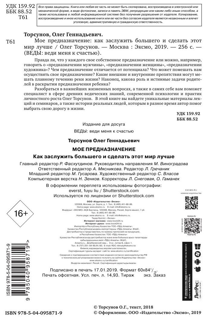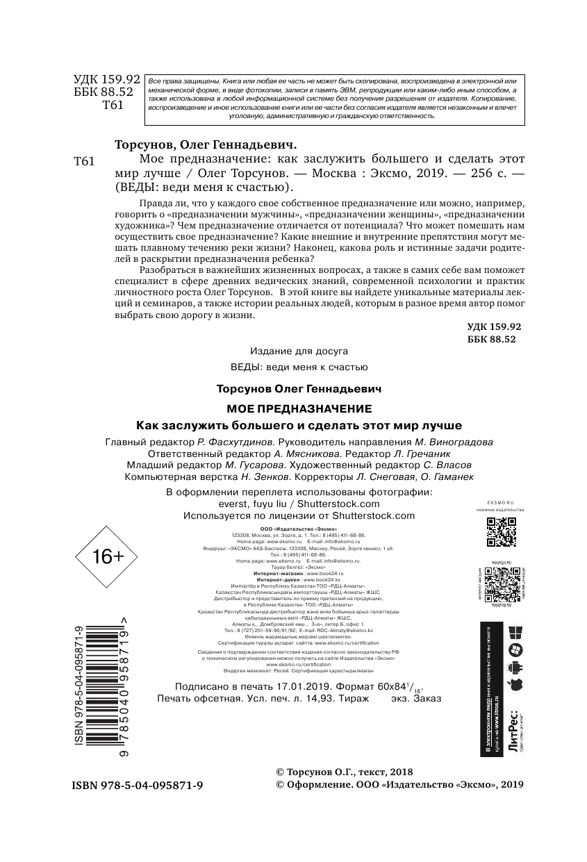 Мое предназначение. Как заслужить большего и сделать этот мир лучше (Олег Геннадьевич Торсунов); Эксмо, 2019