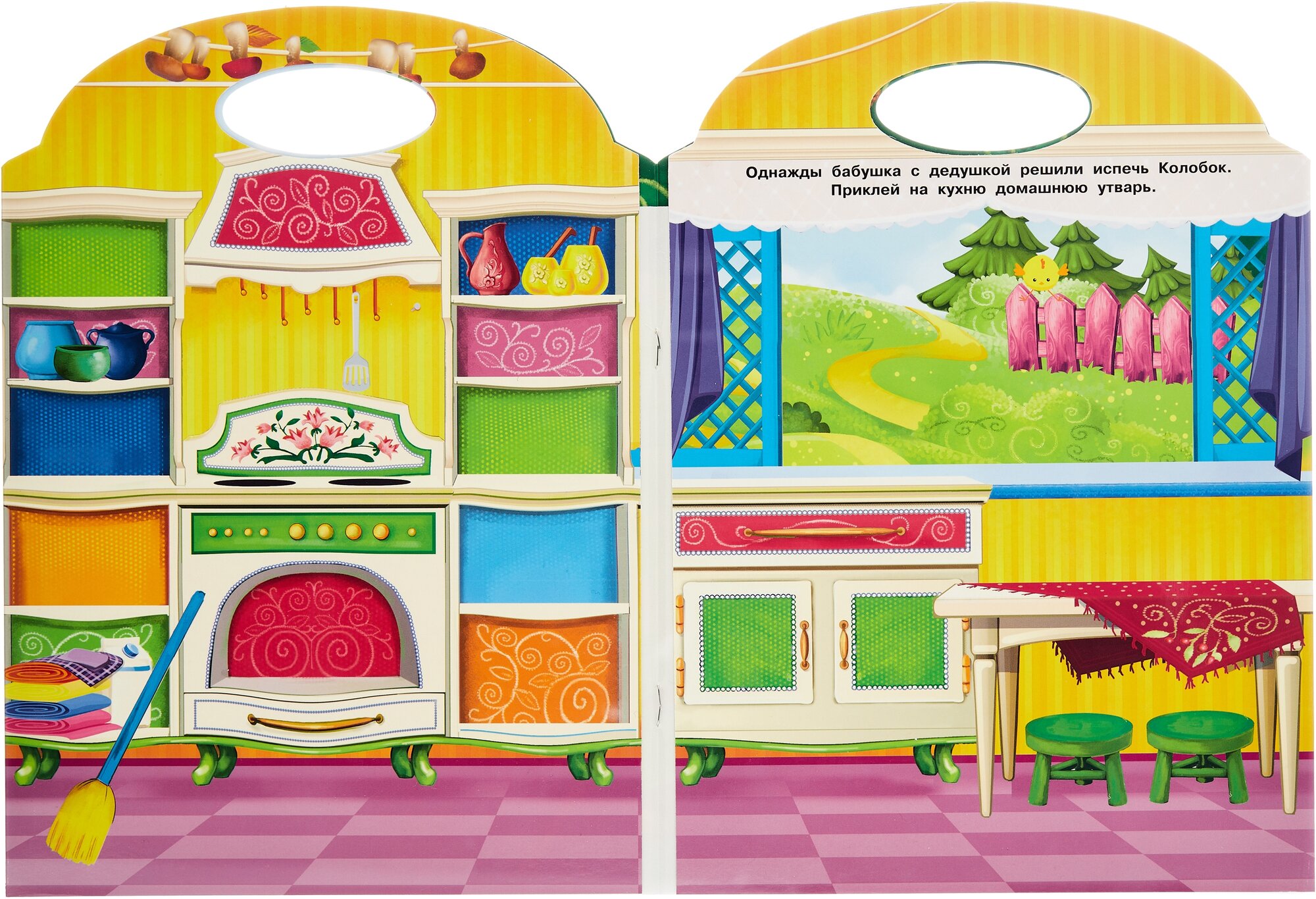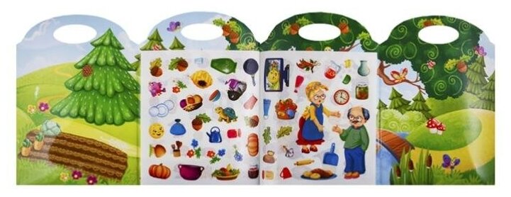 Приглашаем тебя на огромную сказочную поляну, где живёт Колобок. Вспомни сказку, рассказывай её и приклеивай героев. Укрась панораму яркими красочными деталями. Твоим пальчикам придётся потрудиться, ведь в книге 100 наклеек! Не обязательно приклеивать сразу все наклейки. Придумай свои истории. Сначала ты можешь погостить в доме у бабушки с дедом, потом погулять с Колобком по лесу. Вспомни, кого он встретил по дороге? Не забывай петь песенку Колобка! Наклейки в книжке многоразовые, поэтому можно приклеивать их снова и снова. Фантазируй и играй.