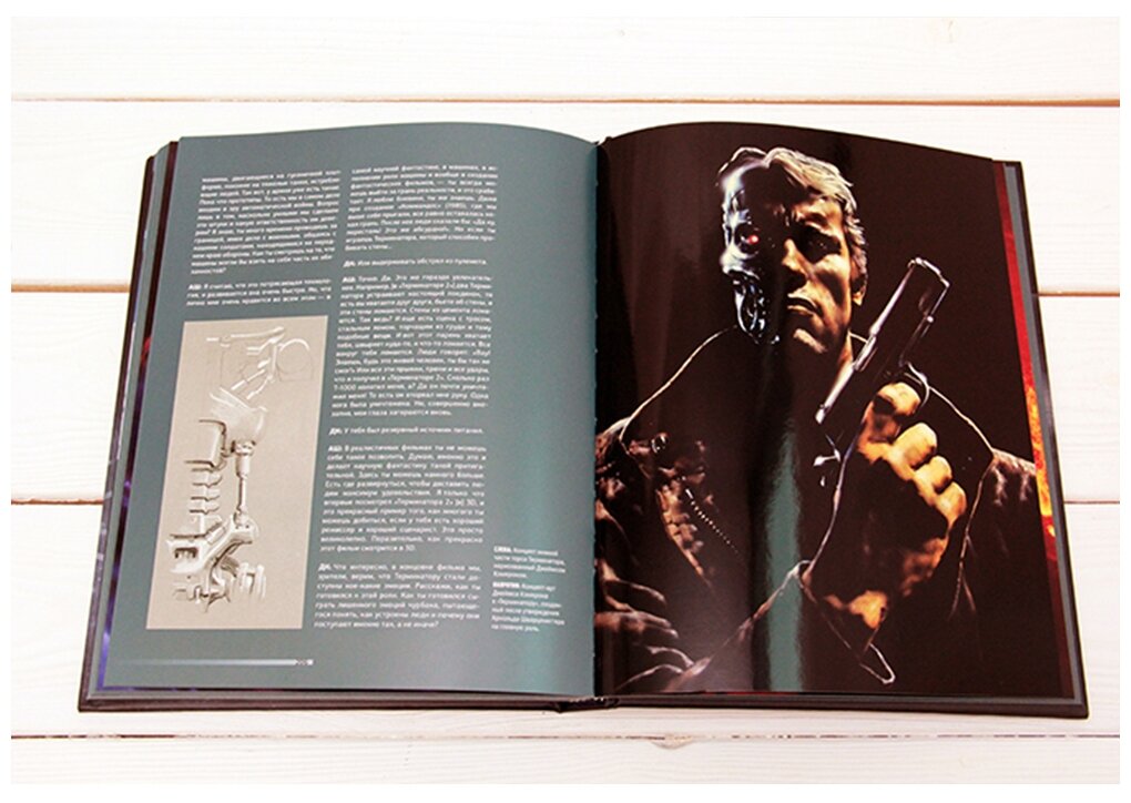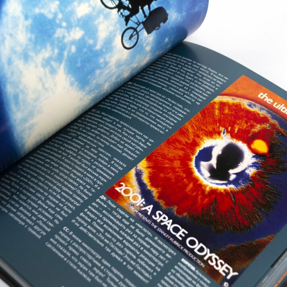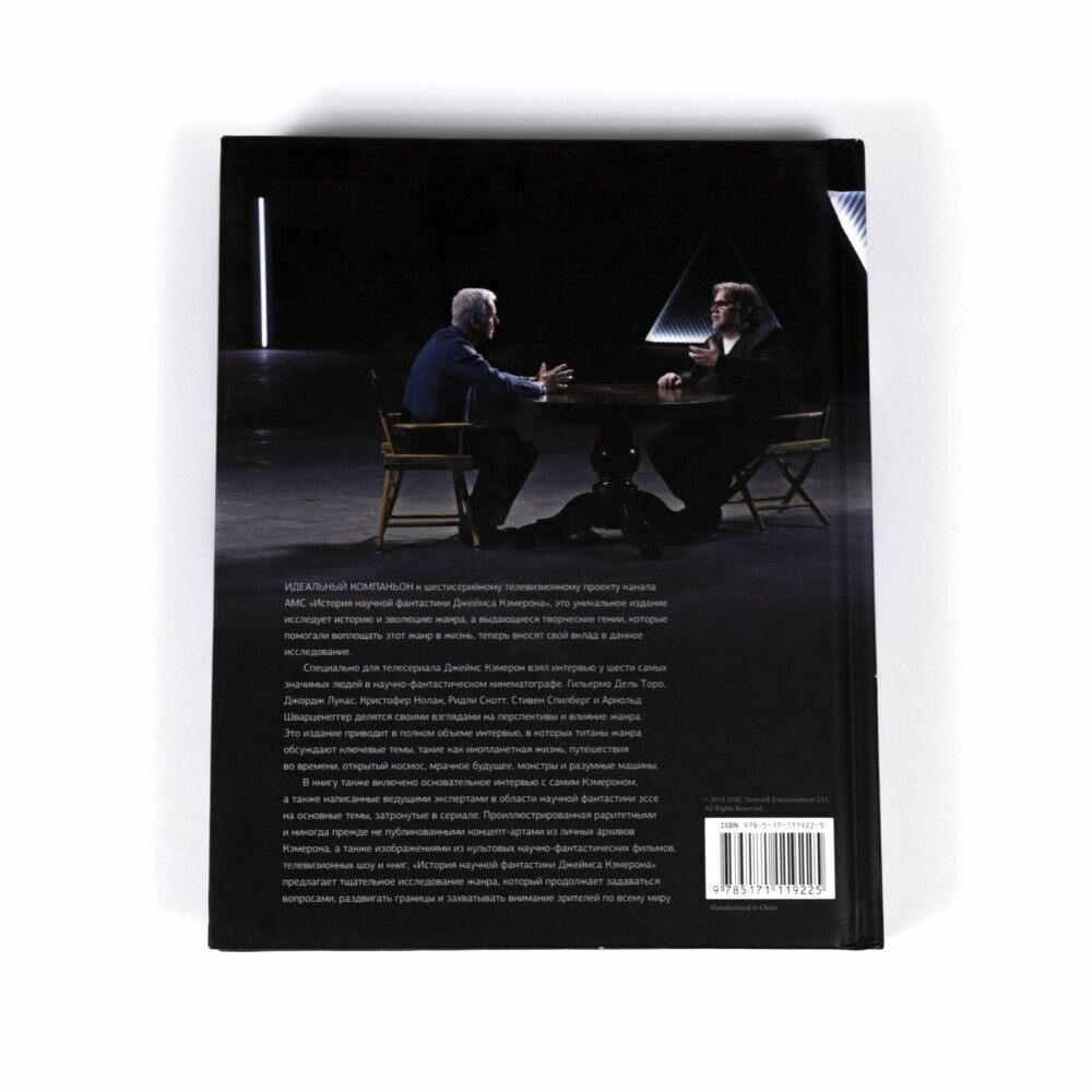 Эту книгу можно охарактеризовать, как адаптация документального фильма о значении научной фантастики в кино индустрии, от телевизионного канала AMC, к которому приложил свою руку ни кто иной, а сам Джеймс Кэмерон, приглашёнными же звёздами были С. Спилберг, Р. Скотт, Д. Лукас и другие. Однако сама книга носит самостоятельный характер и отлично подходит для чтения в домашней среде, а на полке такой экземпляр выглядит весьма привлекательно. Эта книга станет лучшим другом любому фанату и любителю классического фантастического кино, здесь представлены интервью с вышеуказанными деятелями киноискусства, а также бесподобные арты таких культовых фильмов, как День когда земля остановилась, Терминатор, Чужой, Бегущий по лезвию, Робокоп, Инопланетянин и другие, а также информация и детали о тех или иных работах именитых режиссёров и какой вклад научно-фантастическая фабула привнесла в развитие современности. Крайне рекомендую к ознакомлению.