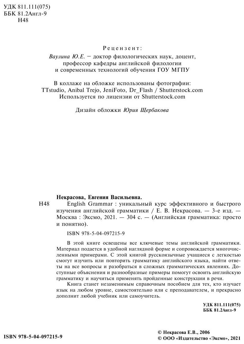 English Grammar. Уникальный курс эффективного и быстрого изучения английской грамматики (Некрасова Евгения Васильевна); Эксмо, 2019