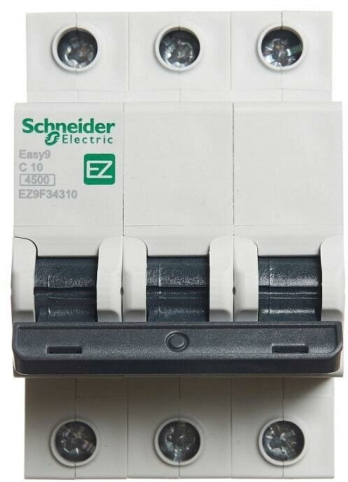 Электрика Schneider electric EZ9F34310 Schneider Electric Easy9 EZ9F34310 - автоматический выключатель для защиты цепей от короткого замыкания и токов при перегрузке. Перегрузка возникает при включении в цепь слишком большого количества электроприборов и может вызвать оплавление проводки и выход из строя самих приборов. Короткое замыкание, как правило, происходит при повреждении изоляции и других неисправностях проводки. Перегрузки и короткие замыкания являются самыми распространенными причины пожаров.
