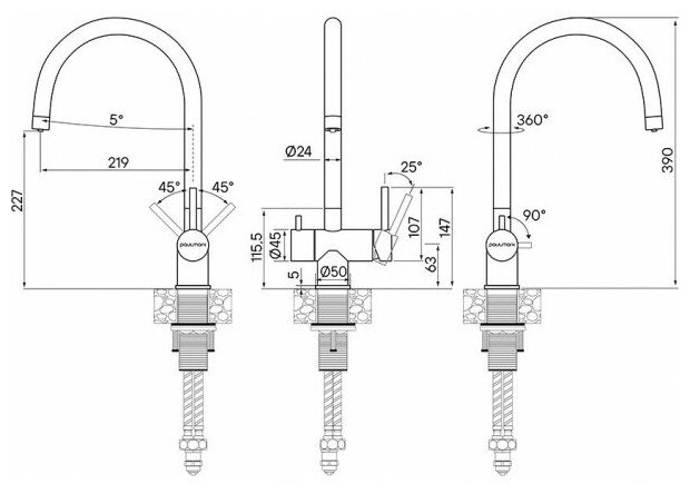 - конус с силиконовыми прокладками для избежания вращения лейки.в положении бокового душа.