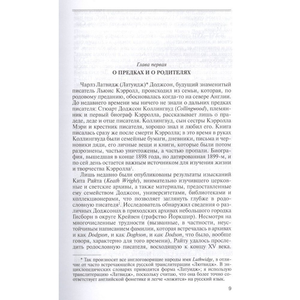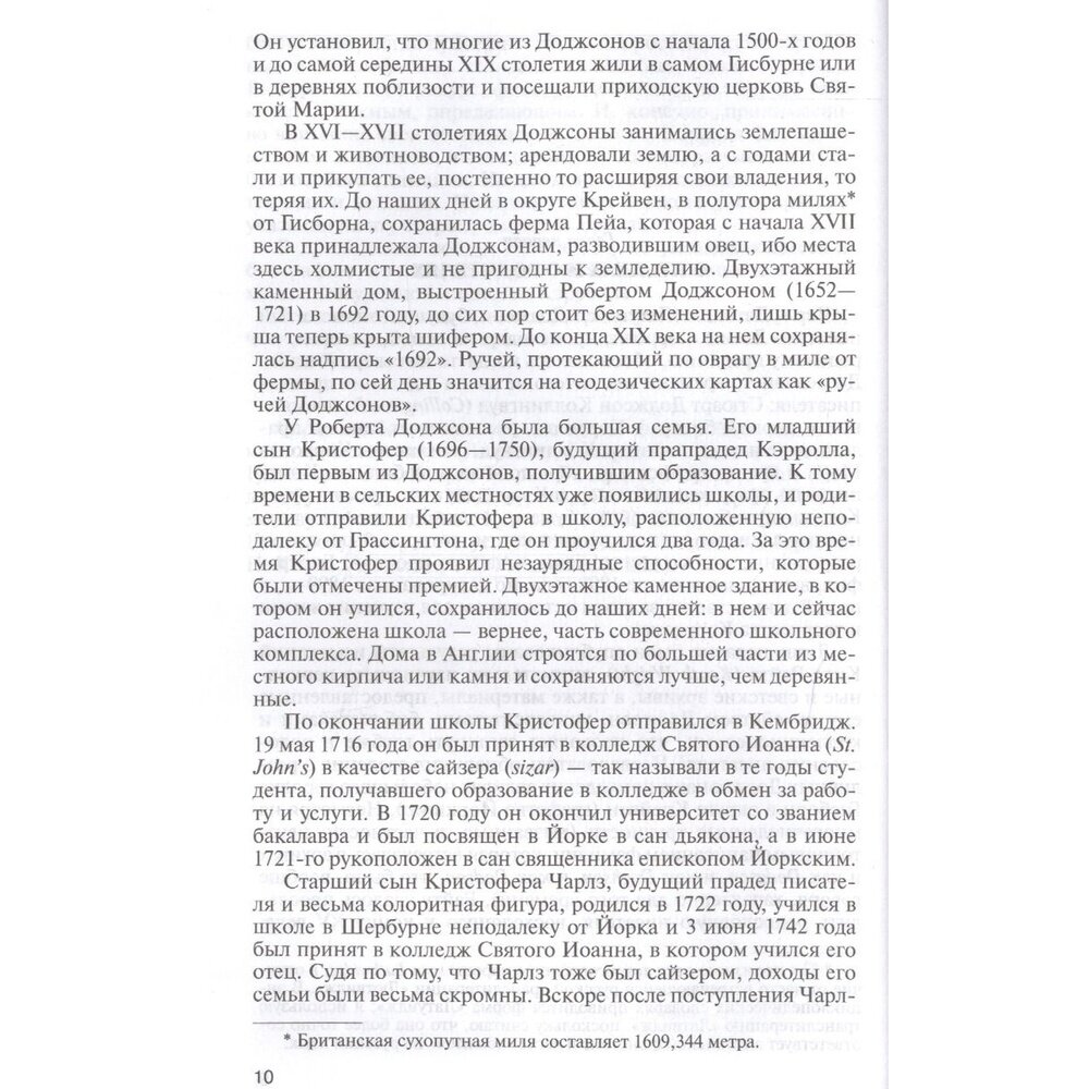 Может показаться, что у этой книги два героя. Один - выпускник Оксфорда, благочестивый священнослужитель, педант, читавший проповеди и скучные лекции по математике, увлекавшийся фотографией, в качестве куратора Клуба колледжа занимавшийся пополнением винного погреба и следивший за качеством блюд, разработавший методику расчета рейтинга игроков в теннис и думавший об оптимизации парламентских выборов. Другой - мастер парадоксов, изобретательный и веселый рассказчик, искренне любивший своих маленьких слушателей, один из самых известных авторов литературных сказок, возвращающий читателей в мир детства.