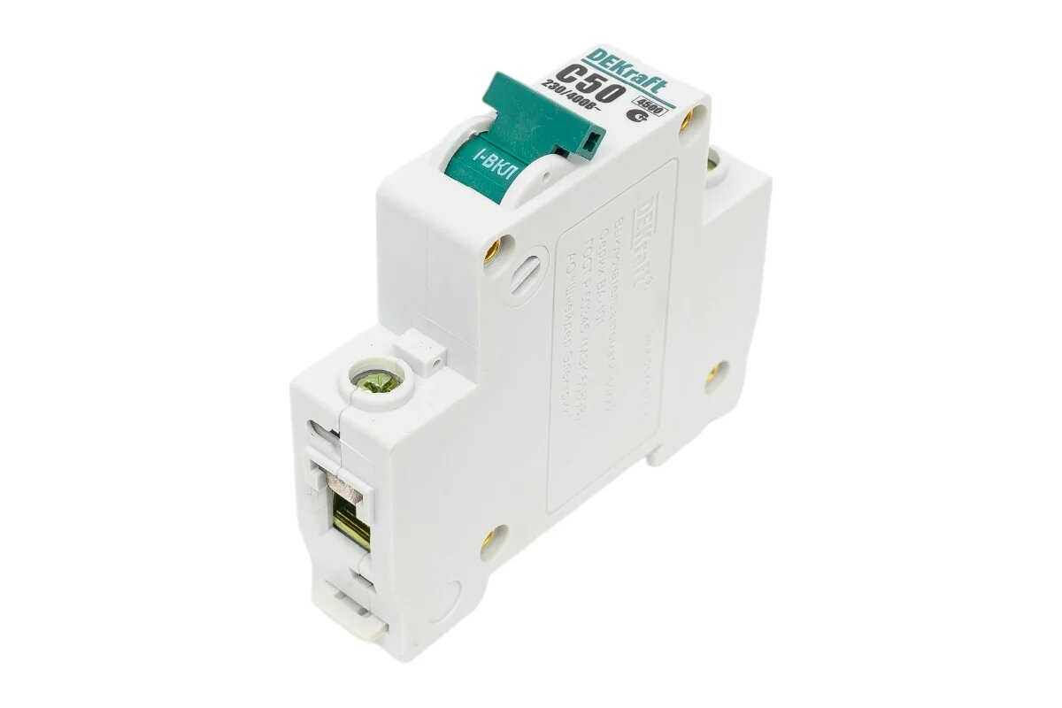 Выключатель автоматический DeKraft это механический коммутационный аппарат, способный включать, проводить и отключать токи при нормальном состоянии цепи, а также включать, проводить в течение заданного времени и автоматически отключать токи в указанном аномальном состоянии цепи, таких, как токи короткого замыкания.
