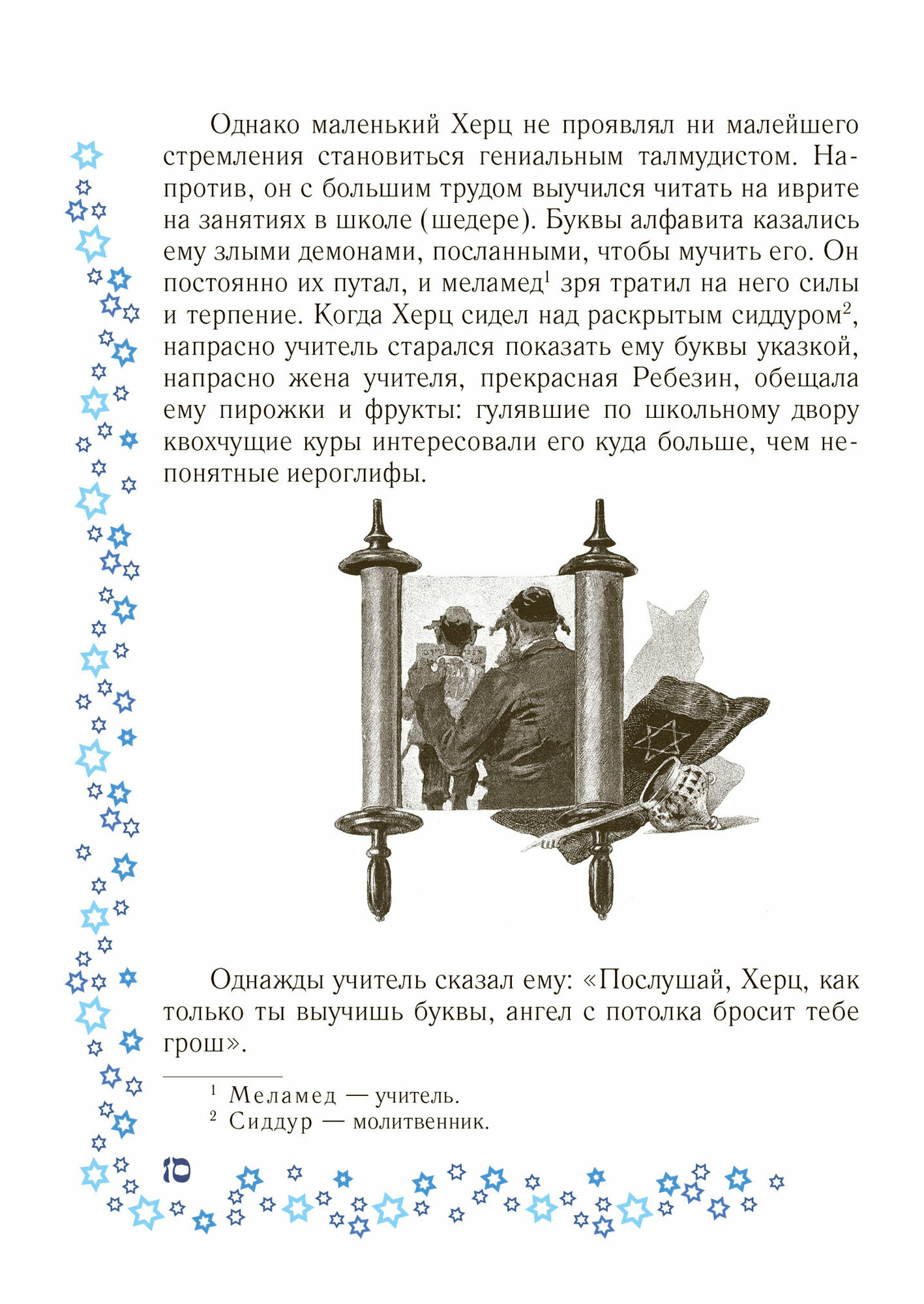 Представленные в данном издании «Еврейские сказки» — это небольшие рассказы, проникнутые симпатией к низшим слоям еврейского населения и теплым юмором. Герои сказок разбросаны по всему миру: Россия, Турция, Швеция, Швейцария, Бельгия, Испания и др. — и объединены такими качествами, как глубокая религиозность, безграничное терпение и необычайное трудолюбие.