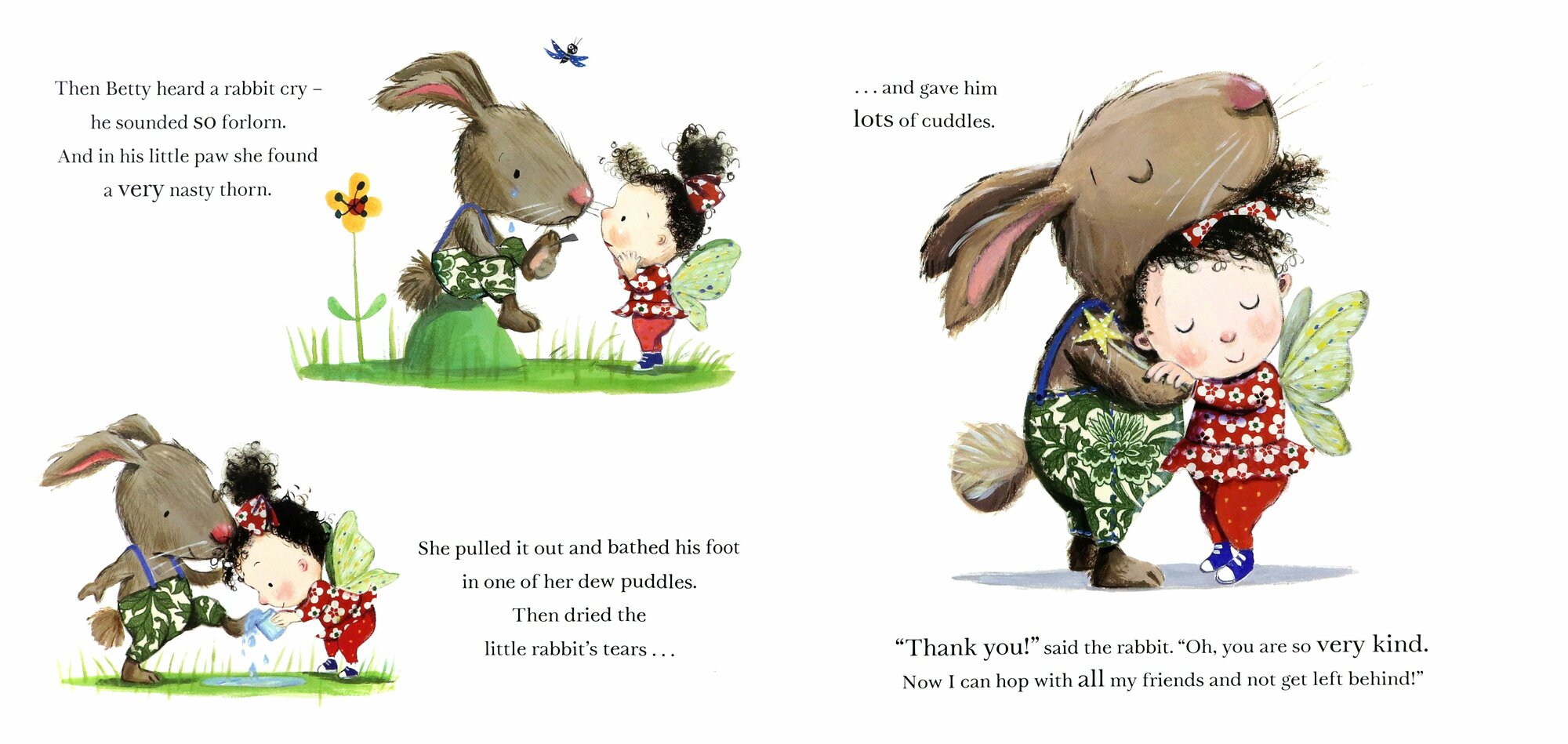 Poor Betty! She' s always getting into messy muddles. She can' t paint a rainbow or scatter dewdrops and her pirouettes are, well, pretty precarious. You see, with so many animals to rescue and friends to help, there' s just no time for Betty to practise all the things a fairy should. But when it comes to the Fairy Ball, Betty' s friends return her gifts of kindness and it becomes clear who is actually the fairiest fairy of them all.