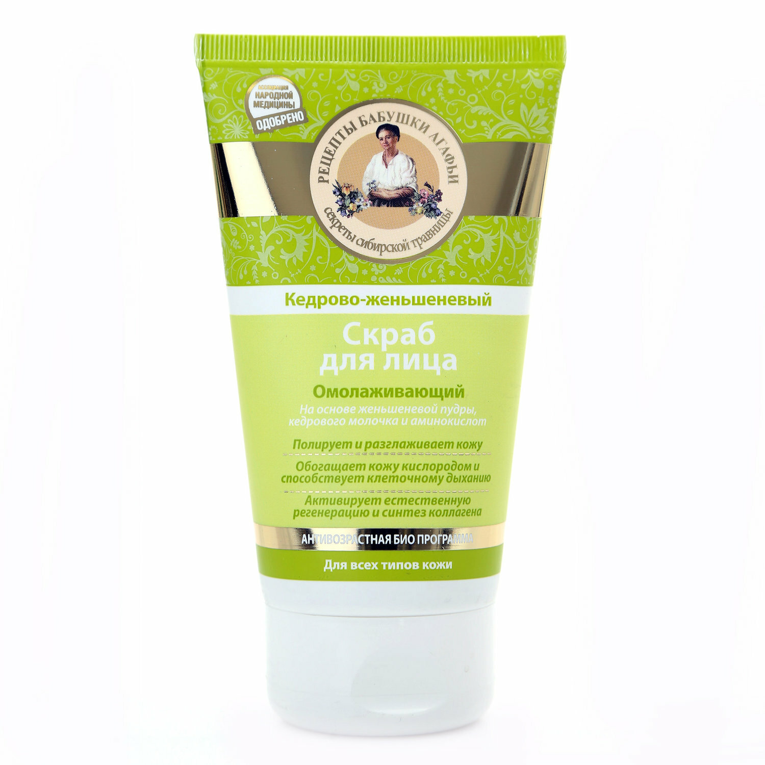 Скраб для лица Рецепты бабушки Агафьи Омолаживающий кедрово-женьшеневый 150мл Первое Решение