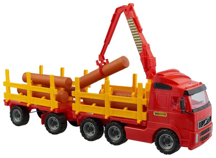 Лесовоз Полесье & quot;Volvo& quot; представляет собой игрушечную копию настоящей спецтехники с прицепом. Крупные элементы игрушки не имеют острых углов, а широкие большие колеса спецтехники позволят ей преодолеть большинство препятствий на своем пути. Спецмашина по перевозке грузов выполнена из прочного полипропилена и окрашена в яркие цвета. Машинка имеет подъемный кран, игрушечные бревна и дополнительный прицеп с бревнами. Такая машинка будет отличным подарком вашему мальчику, ведь ее можно взять в собой на улицу, в песочницу или просто катать дома, придумывая интересные сюжетные игры с ней.
