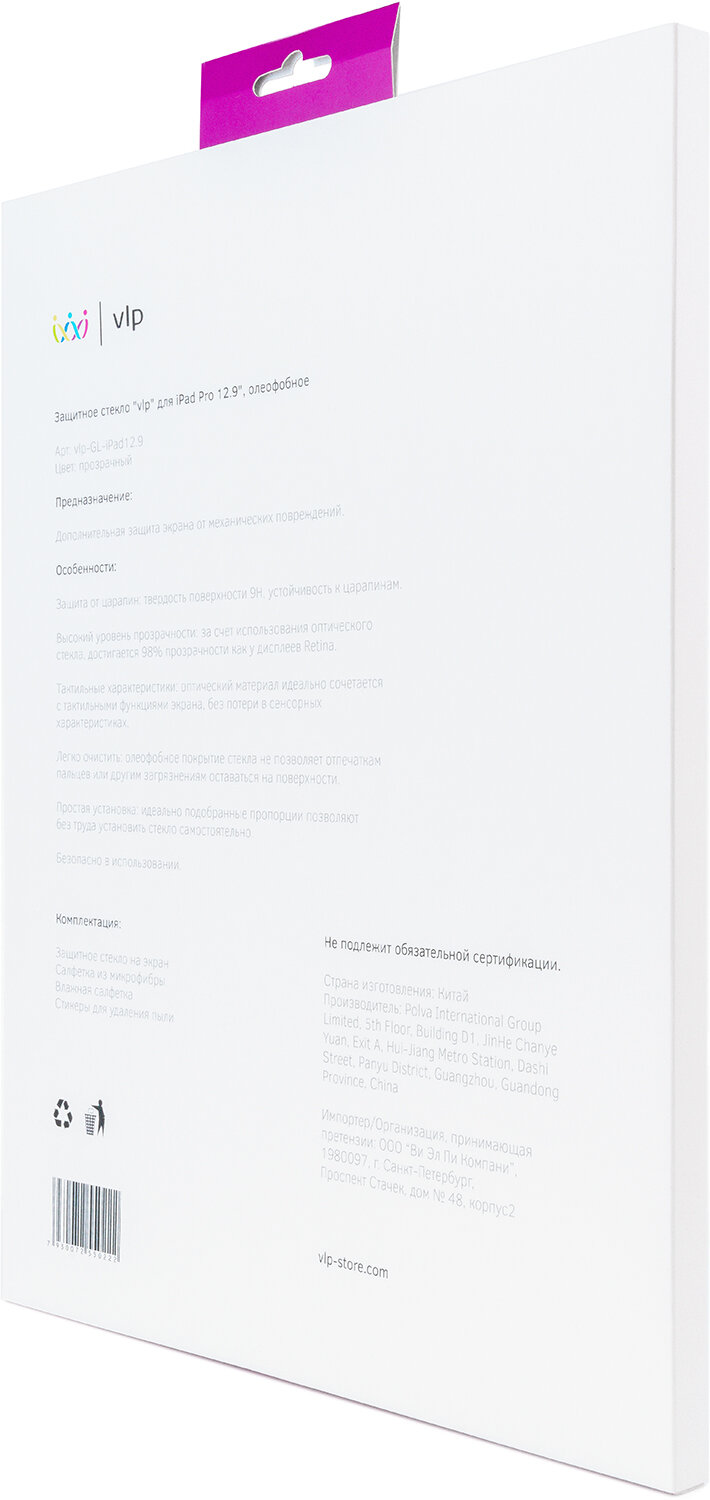 | Наименование модели | VLP для iPad Pro 12.9" (2018) олеофобное |
