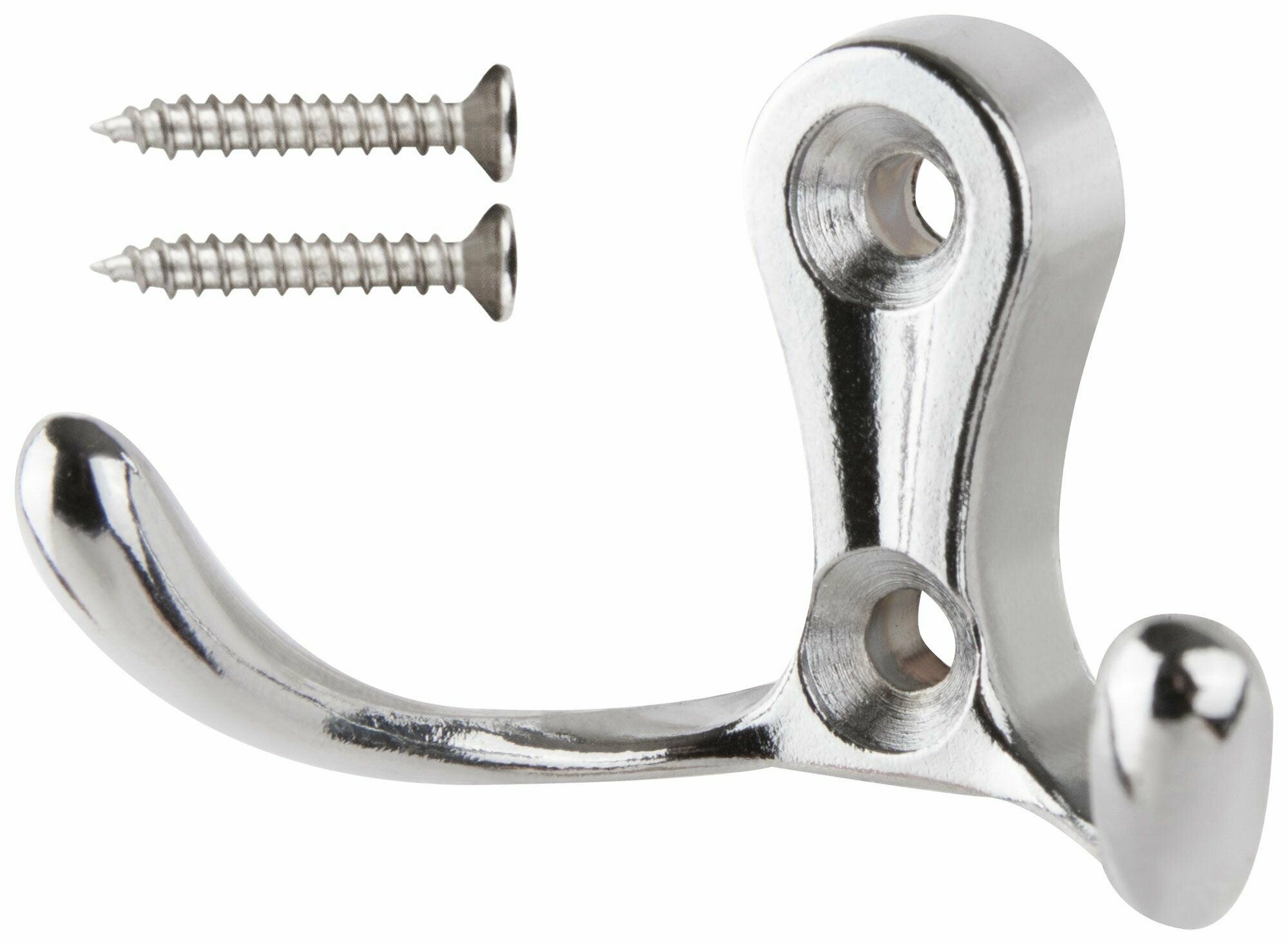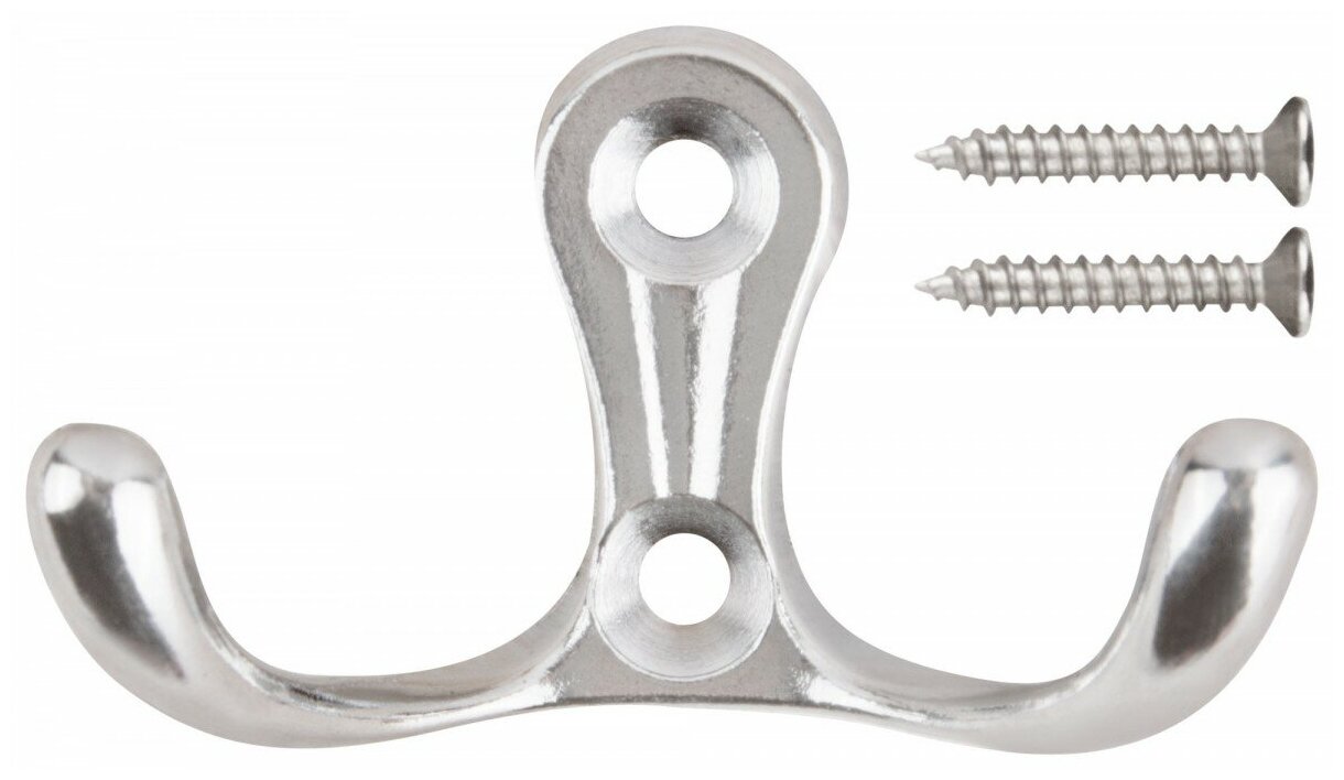 Крючок двойной. Для бытового применения. Необходимый крепеж в комплекте. Материал: инструментальная сталь. Упаковка: п/э пакет с картонным подвесом.