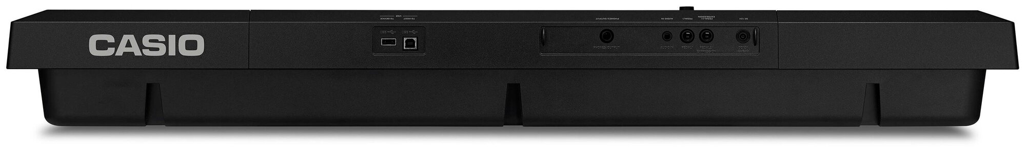 Casio – интерактивный синтезатор с достаточно хорошими функциональными возможностями, имеет 800 предустановленных тембров, 235 стилей автоаккомпанемента (плюс пользовательские), оснащается встроенной акустической системой 2х6 Ватт. В клавишном инструменте предусмотрен арпеджиатор, DSP-процессор эффектов, разъем для подключения USB-накопителя, линейный вход, есть множество других полезных функций.