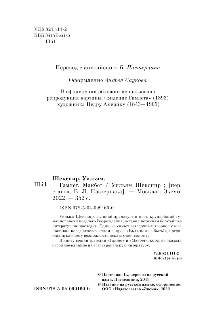 Книга: Гамлет. Макбет (Шекспир Уильям , Пастернак Борис Леонидович (переводчик)); Эксмо, 2022