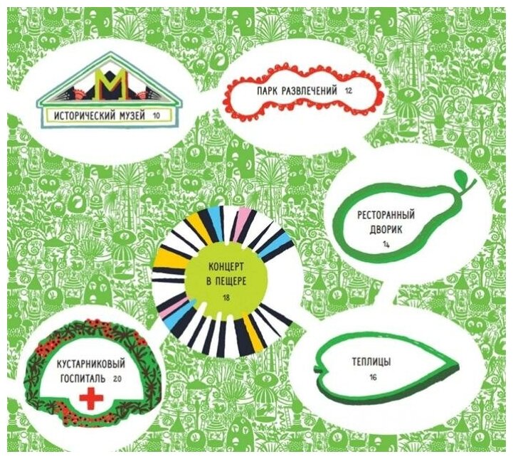 Где же она может быть? Давай поищем в музее и пещере, где проходит рок-концерт, на железнодорожной станции и рынке, в школе и теплицах.