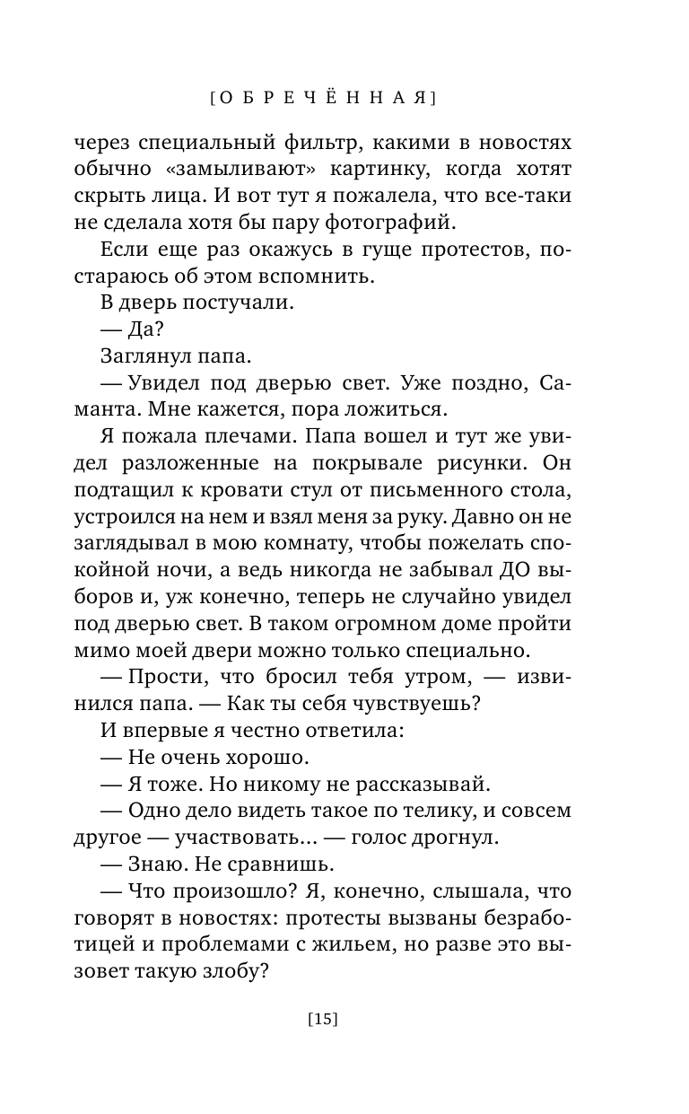 Сэм с детства привыкла поддерживать своего отца, заместителя премьер-министра, и подчиняться его требованиям. Но теперь все изменилось. Великобритания оказалась на грани катастрофы: границы закрыты, правительство ополчилось против молодежи, открыв на нее настоящую охоту. Знакомство с Авой, девушкой из простой семьи, перевернуло жизнь Сэм. Она больше не готова слепо следовать приказам родителей. Когда на площадях столицы появились первые виселицы, Сэм поняла, что должна сделать выбор и попытаться остановить кровопролитие и ужас. На что может быть способна дочь одного из самых высокопоставленных лиц страны, если окажется, что ей больше нечего терять? В этой игре ставки высоки как никогда - Сэм поставила на кон свою жизнь...